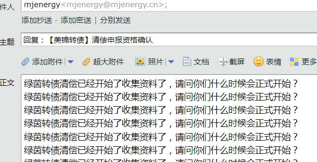最近有5个可转债要清偿的我整理下分别是:美锦转债,塞力转债,绿茵转债,鹿山转债,最新增加了回盛转债 清偿五贱客 他们的清偿时间和邮箱和需要材料我总结如下: