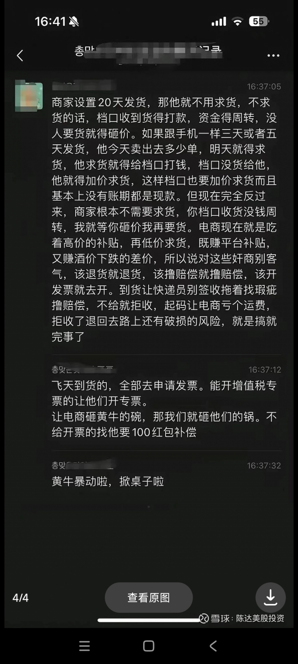 楼主这几瓶董事长签名的酒太有纪念意义了,丁其实干的不错起码对上市公司利润率提升做了几件实事,估计是步子有点大得罪经销商大佬被废了,几百亿的利润这里面水太深得罪经销商大佬??????茅台不一直都是甲方吗?经销商什么时候能影响到茅台了?