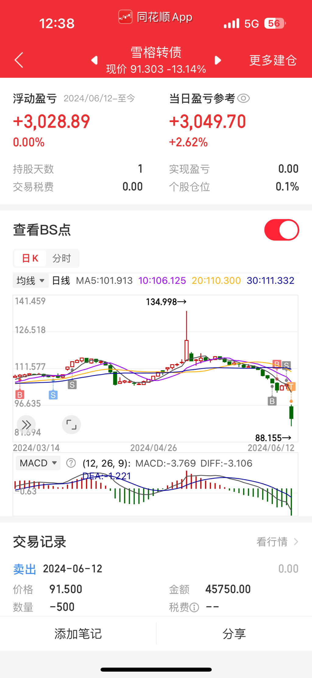 雪榕原来有观察仓50张,本来准备跌的少就清仓,MD,结果开盘太低还买了些...