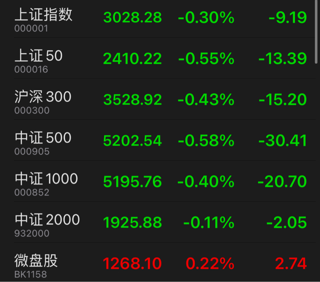 上证领先指数已经翻红大涨,但从50到2000代表全市场前3800支个股的指数全部都是绿的,仅仅微盘股微涨,所以领先指数等于微盘股指数?