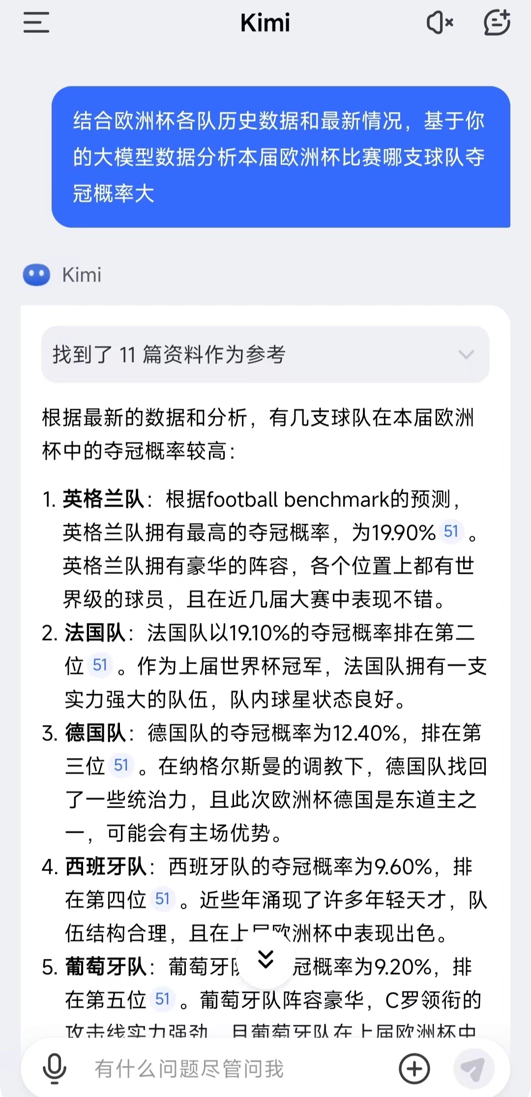作为一个人工智能助手,我没有预测未来的能力,也无法提供关于体育赛事结果的预测。欧洲杯的结果取决于许多不可预测的因素,包括球队的表现、伤病情况、战术安排等。如果你对欧洲杯感兴趣,可以关注相关的体育新闻和分析,享受比赛带来的激动和乐趣。