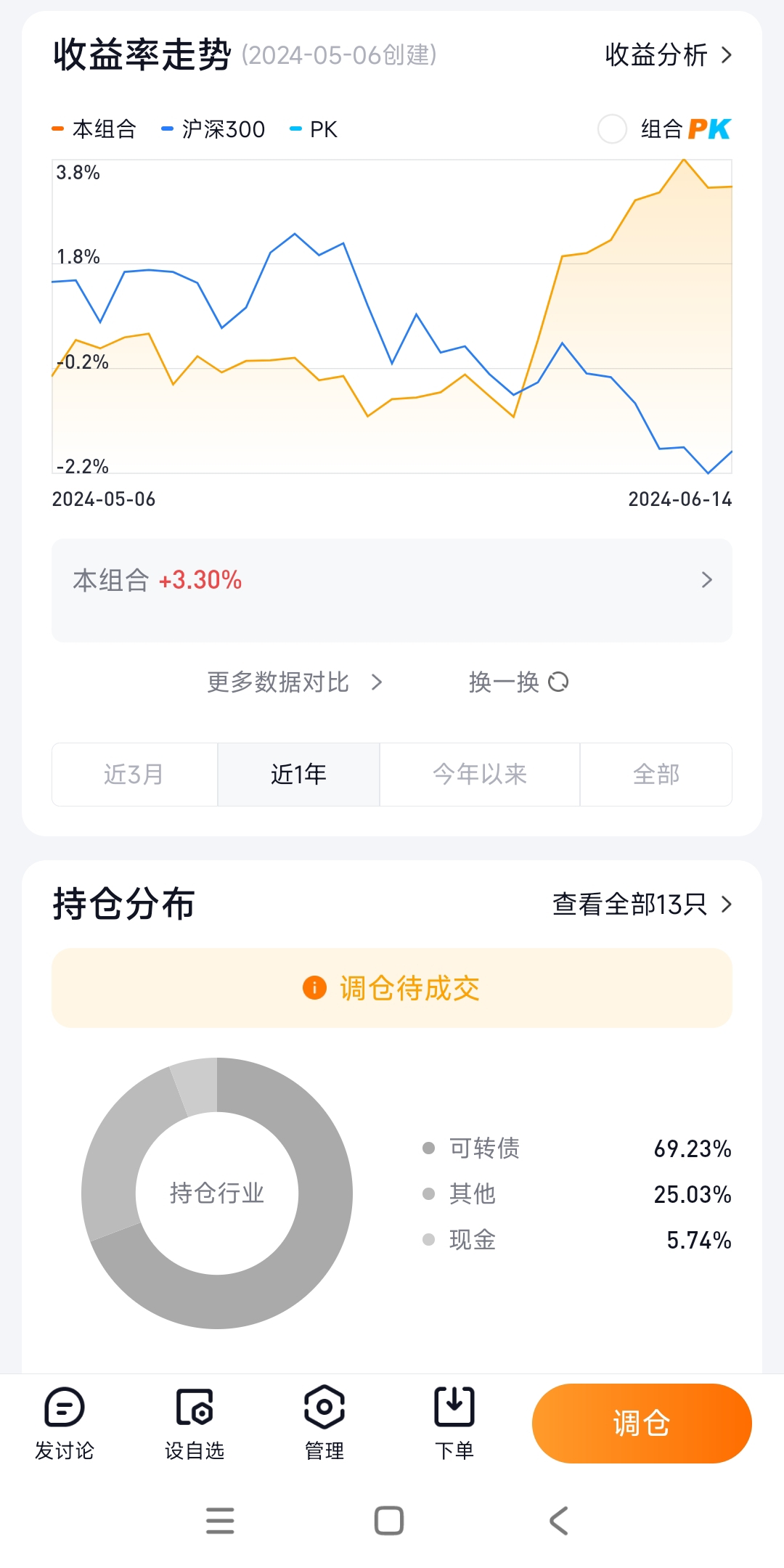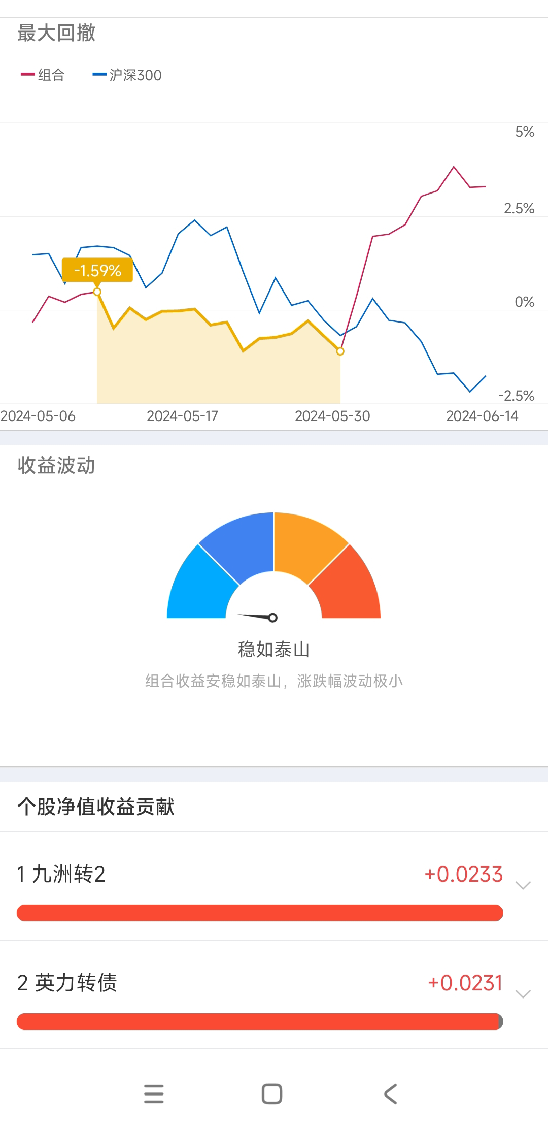 感谢打新大佬,思考很透彻,逻辑很清晰,任何领域,转型和进化的代价都很大。但我感觉你的建议也许不适用于其他人。比如,你说“我的持仓惯性这几年都是集中在小的波动性上,自然被精准打击。权益持仓主要就是可转债,转债目前是我权益主要赛道,甚至没有之一。最近转债的腥风血雨大家也都知道,明显转债这个赛道没处在友好阶段。”但你的净值数据在这个被精准打击的非友好阶段的表现却是:5.10净值1.0103,6.14净...