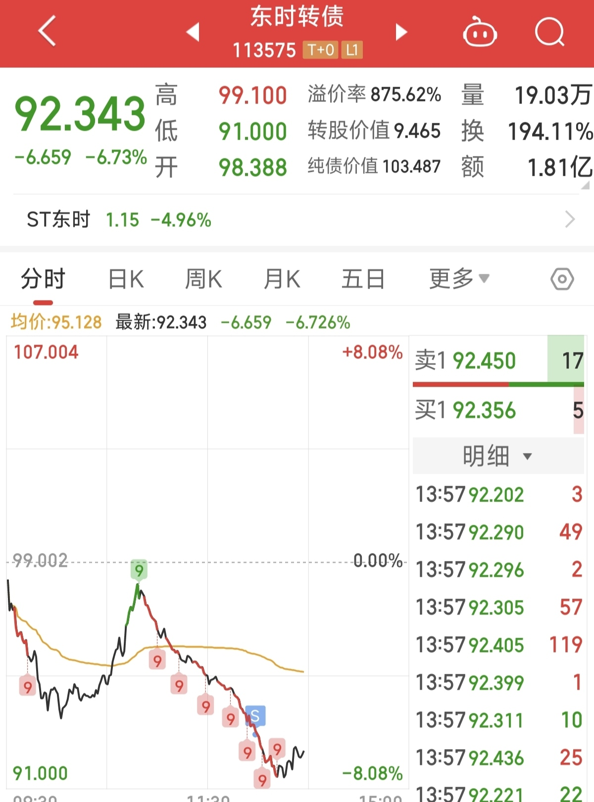 看着东时转债跌入110以内,感觉这么小的盘子,应该会拉升一点吧。抱着试一试的心态,摊上一饼,结果一路下到90。以亏损10个点,丢了200大洋离场。