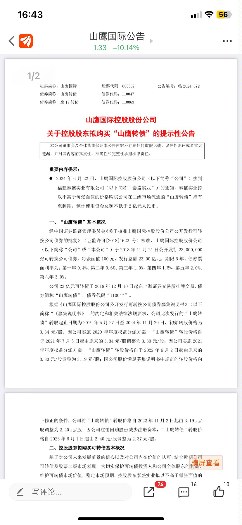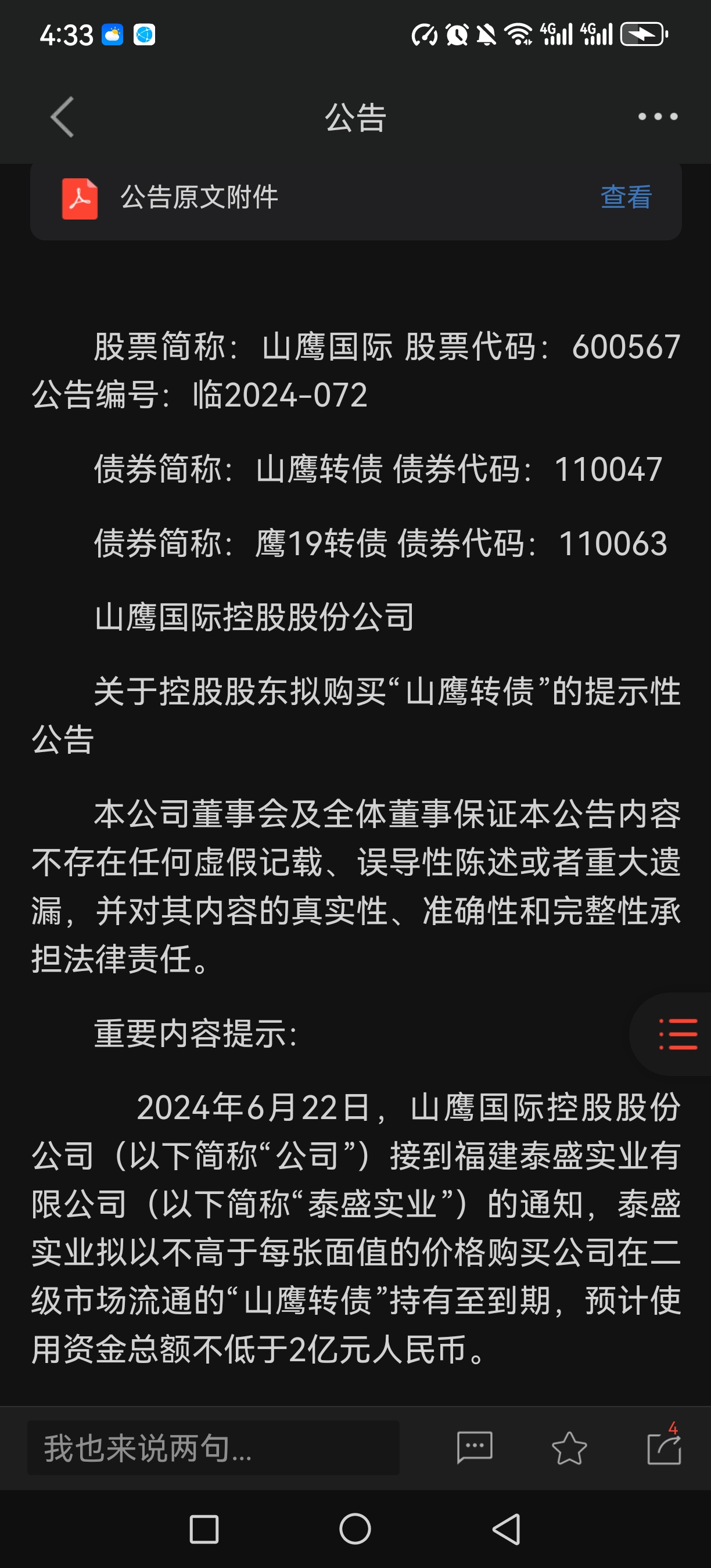 你有山鹰吗?没有就别瞎哔哔,有的话既然这么不看好山鹰转债,我77无限收