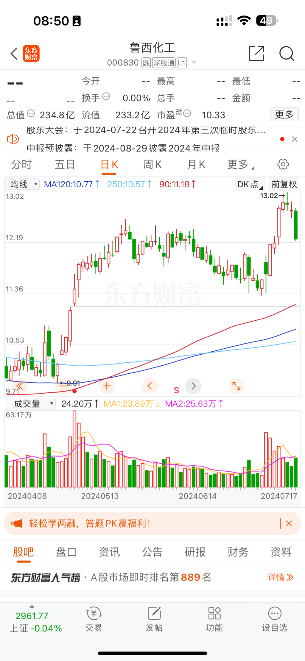 对于鲁西化工,对于新玩家来说看到大跌大概率着急卖出,落袋为安。如果我是庄家我会进点货