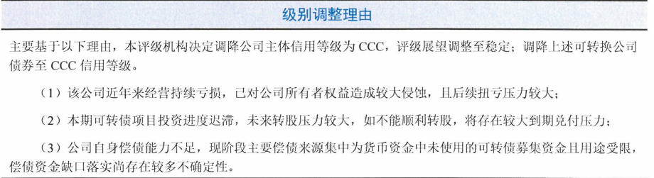 我也觉得这个评级不靠谱,CCC是大概率违约的评级。但亚药主要负债就是可转债,而可转债剩余资金就待在账上,还有监管。要说缺口,那就是明年4月到期,要按115赎回,多出大概1亿的资金。业绩确实不行,但亏损也不是多大的巨额亏损...被评了个CCC,然后几个眼见有退市风险的倒是A、AA的评级,太TM专业了!广汇aa+
