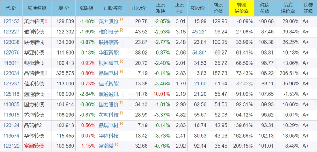 泰瑞机器今日收盘价9.33,转股价8.29,转股价值=转债面值/转股价*正股价=100/8.29*9.33=112.55,转股价值尚可,可转债转股价值越高越好。