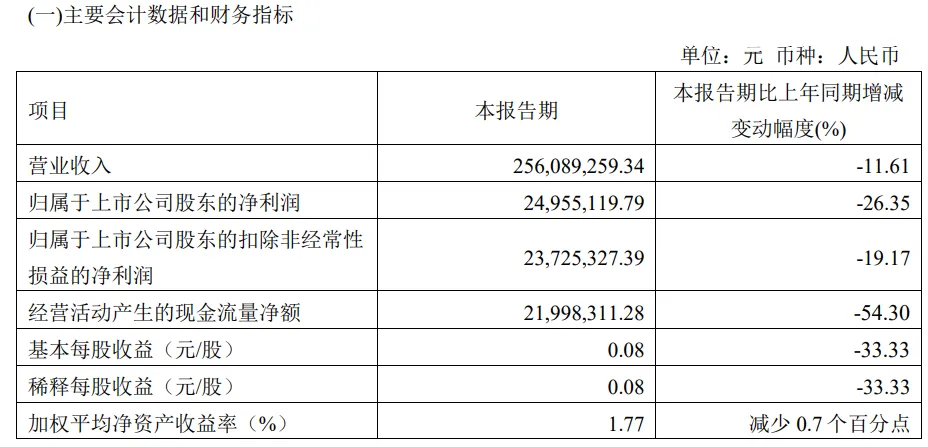 2024年第一季度公司营业收入同比减少11.61%,归属上市公司股东的净利润同比减少26.35%。