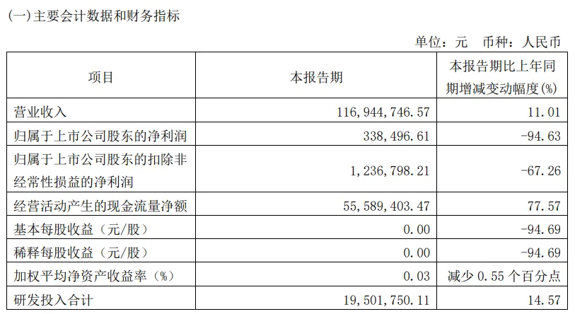 2024年第一季度公司营业收入同比增长11.01%,归属上市公司股东的净利润同比减少94.63%,净利润减少主要系公司提前布局高端测试产 能,使折旧、摊销、人工、电力、 厂房费用等固定费用及财务费用 较上年同期大幅增加所致。