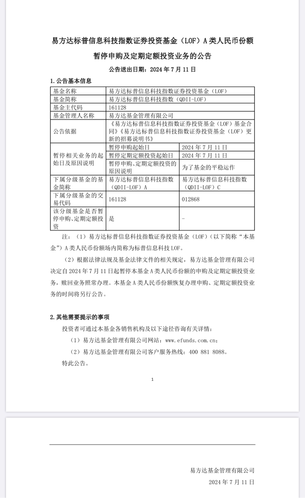 2024年6月11日,标普信息科技LOF场内份额5462万份,新增464万份,相当于3.51万辆拖拉机申购。