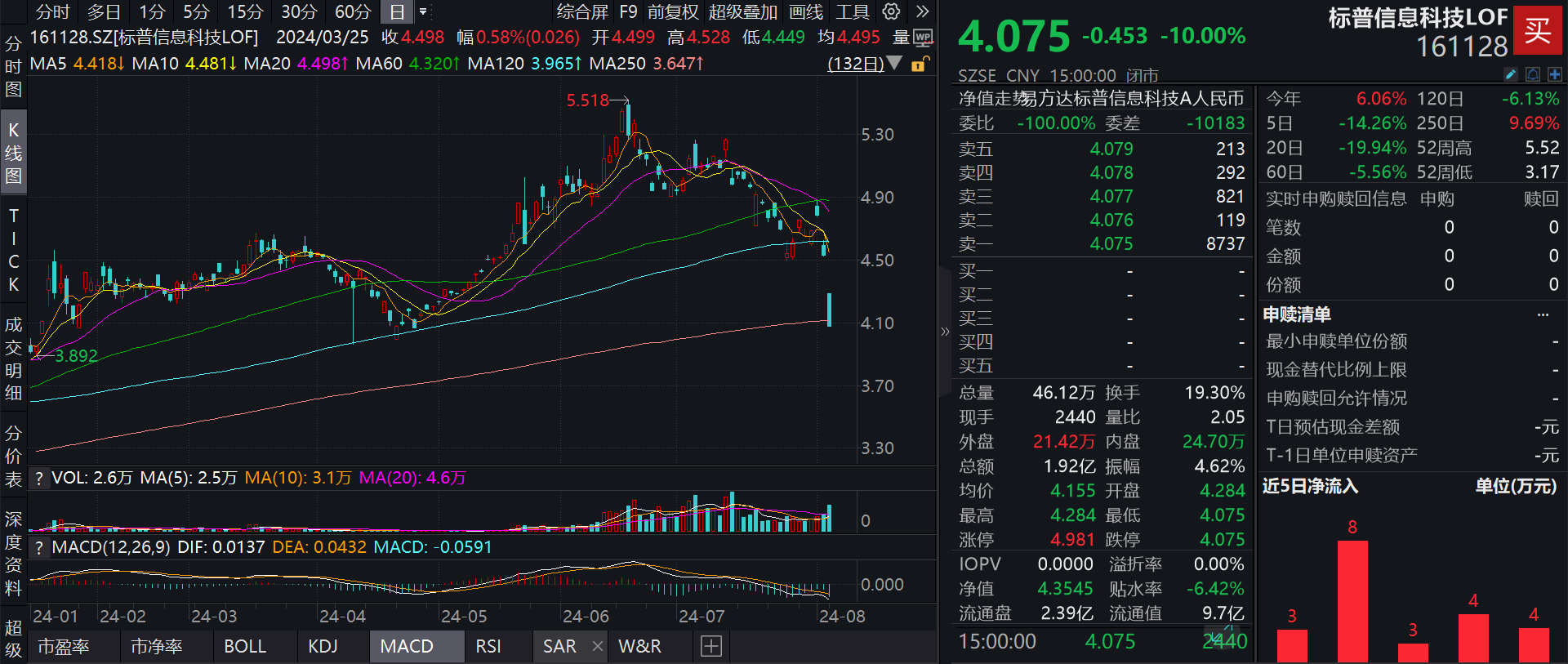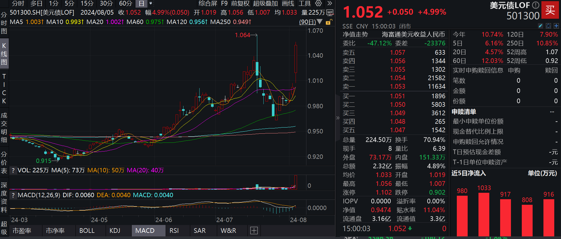 2024年8月5日,标普信息科技跌停,美元债LOF继续发冰棒降暑。