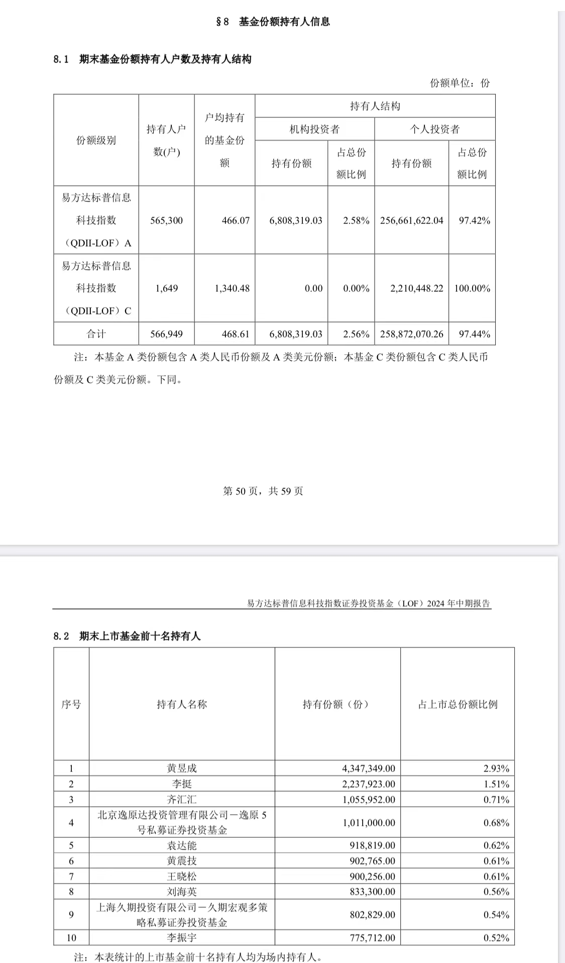 2024年6月末,标普信息科技LOF持有人56.69万户。