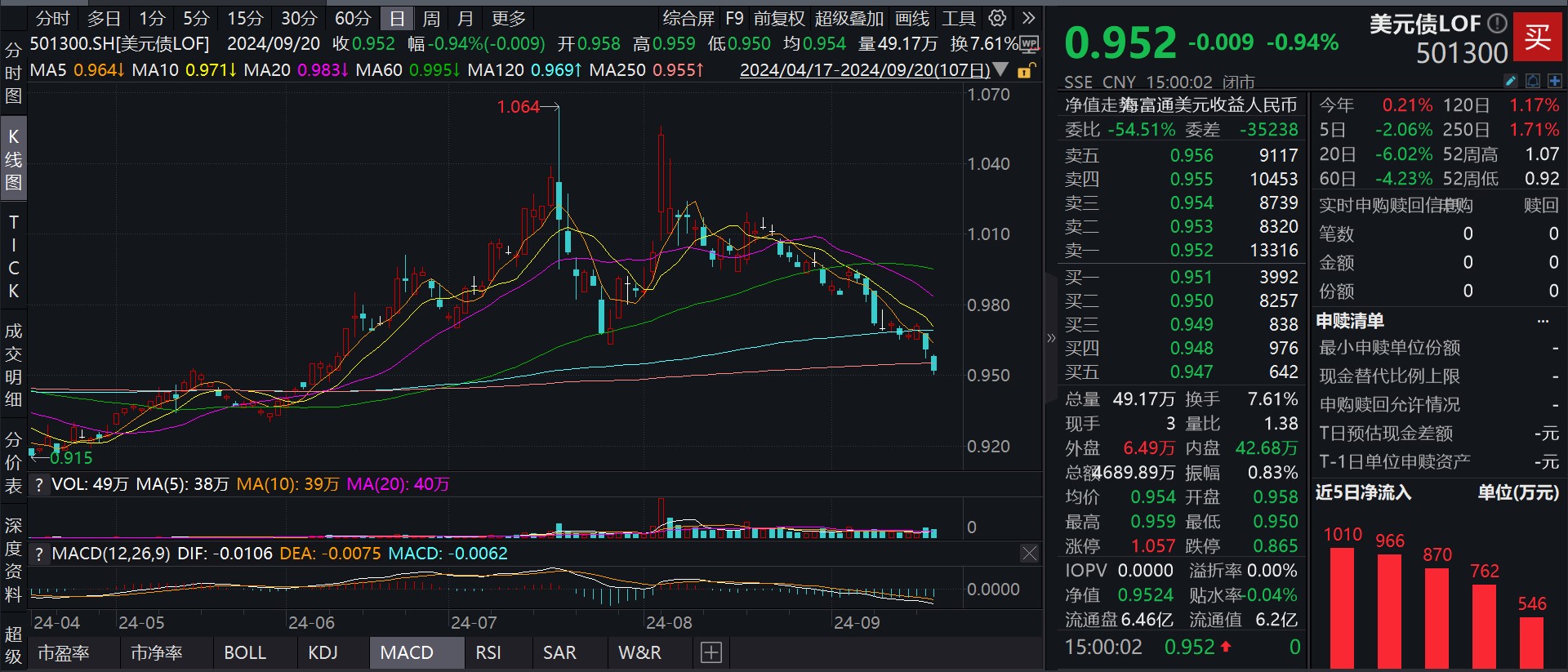 美元债LOF场内份额16376.60万份,新增310.78万份,1个身份证申购100元,相当于2.93万人申购。