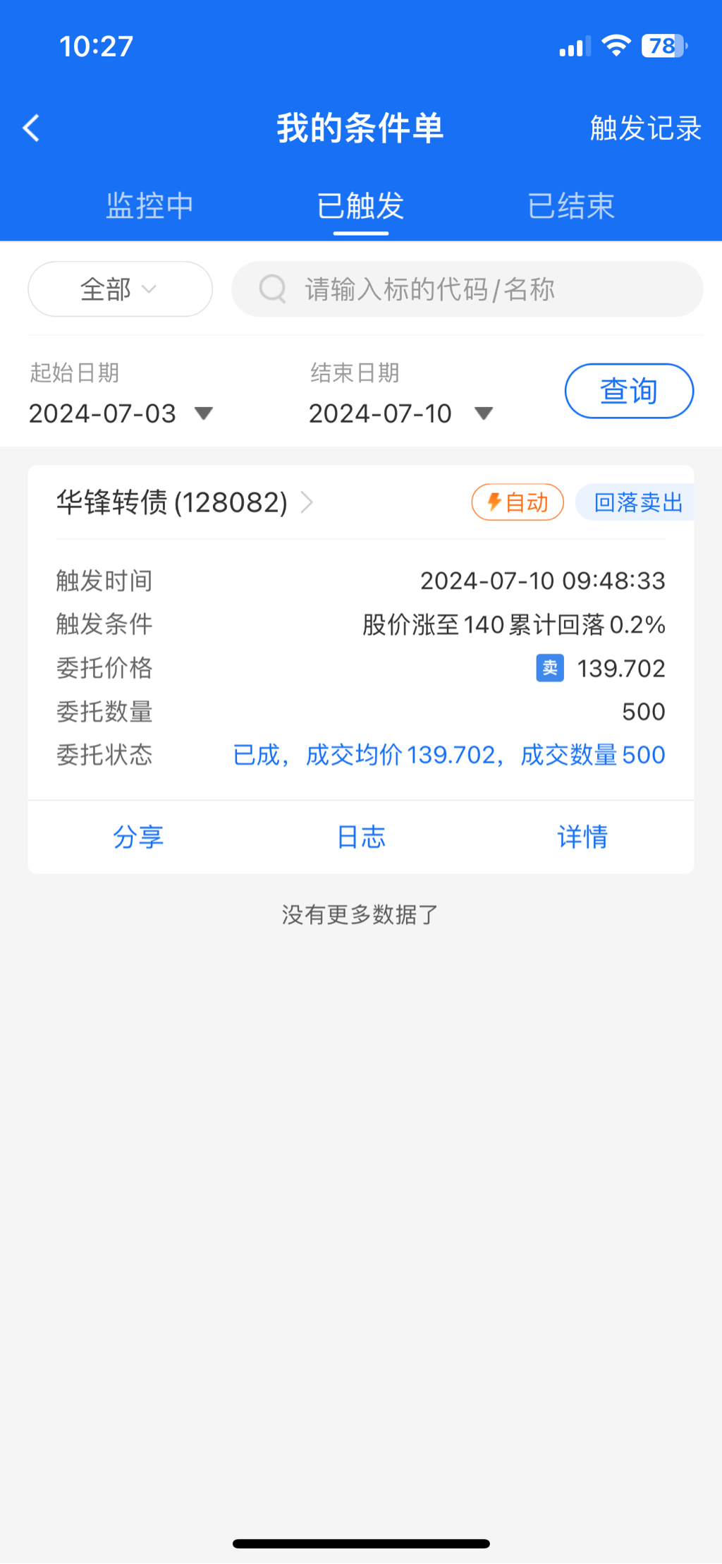 华锋条件单 139.9 自动触发了,回口血