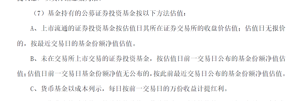 fof的合同,我随便找了一个和楼上说的一样,有场内交易的etf按交易收盘价计算净值.