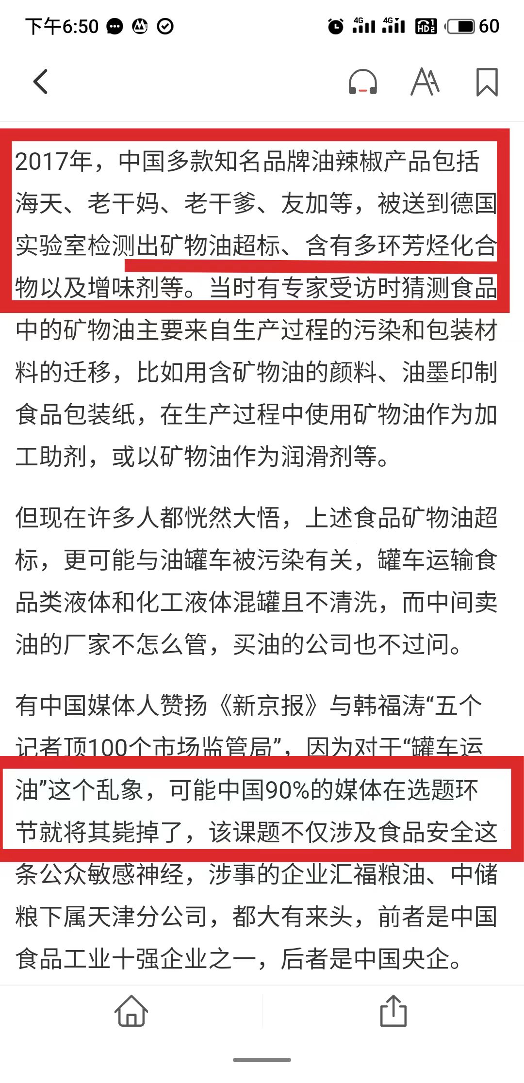 这个还大概率不是全国现象。多数大厂都是用的固定的车队,罐体都是喷了字“食用油专用”之类的,这些运输公司为了他的资质,一般也不大会去拉非食品类的物料的,当然相对来说运费也贵一些。在市场随便找散罐车拉油的,主要是一些中小规模的厂家、食品厂,为了便宜不愿意用大厂的车队,就像报道里汇福说的,是客户的自提车辆,不是他们的车。国务院成立调查组说明他们没你这么有信心是偶发的