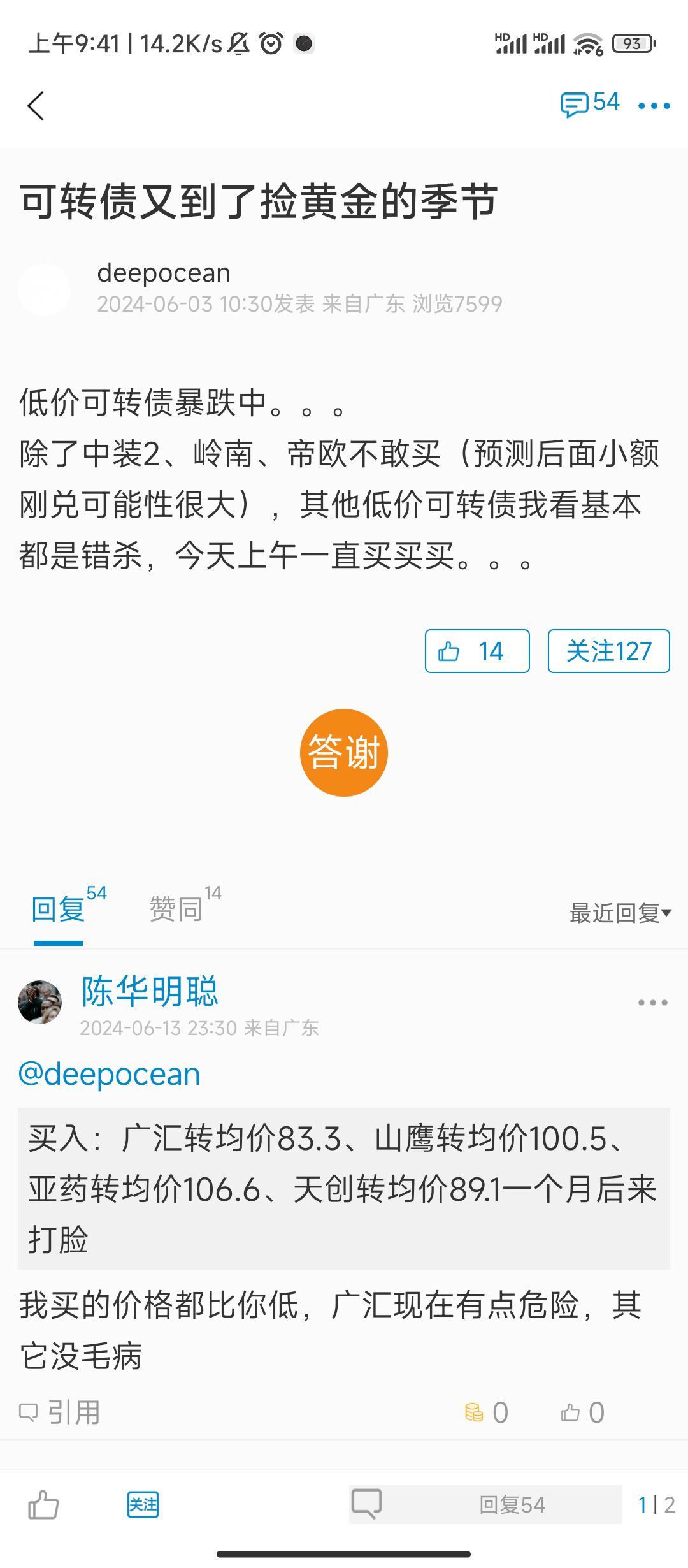看到提到我了,我说一下,广汇我没有,毕竟负债率60%以上的债,还那么大盘,我一般是回避的,就是买也不会多。很久以前买过200张吧。那时候波动很小。而且拿了好久,赚钱效应太差就卖了。拖员工工资的4s店是广汇汽车的子公司不是广汇汽车本身,所以,反馈拖工资的员工和反馈按时收到工资的员工都是对的。又不是广汇汽车统一发的工资,各地4s店情况不一。这就是我说的,很矛盾,寄希望孙广信利用公司法有限责任广汇汽车赖4s店子公司的工资,又怕孙广信利用公司法有限责任广汇集团赖广汇汽车的可转债。