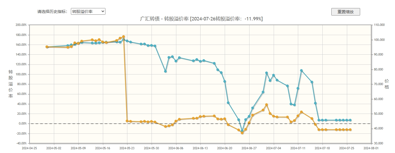 在转债上市后,如果正股价格一路下跌,而转债价格受债底承托,没有同步下跌,导致转股价远远高于市价,则溢价率会非常高。