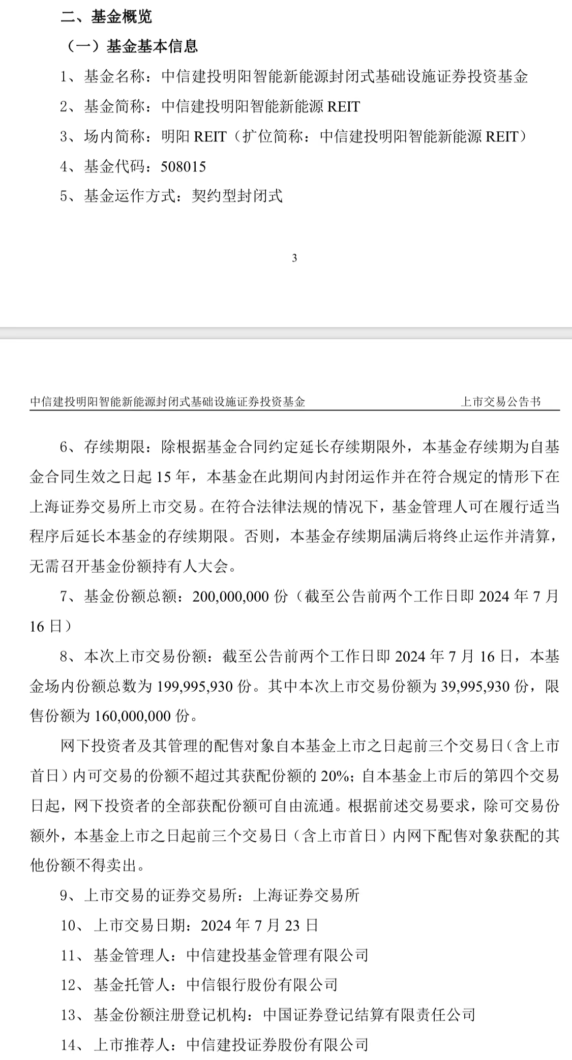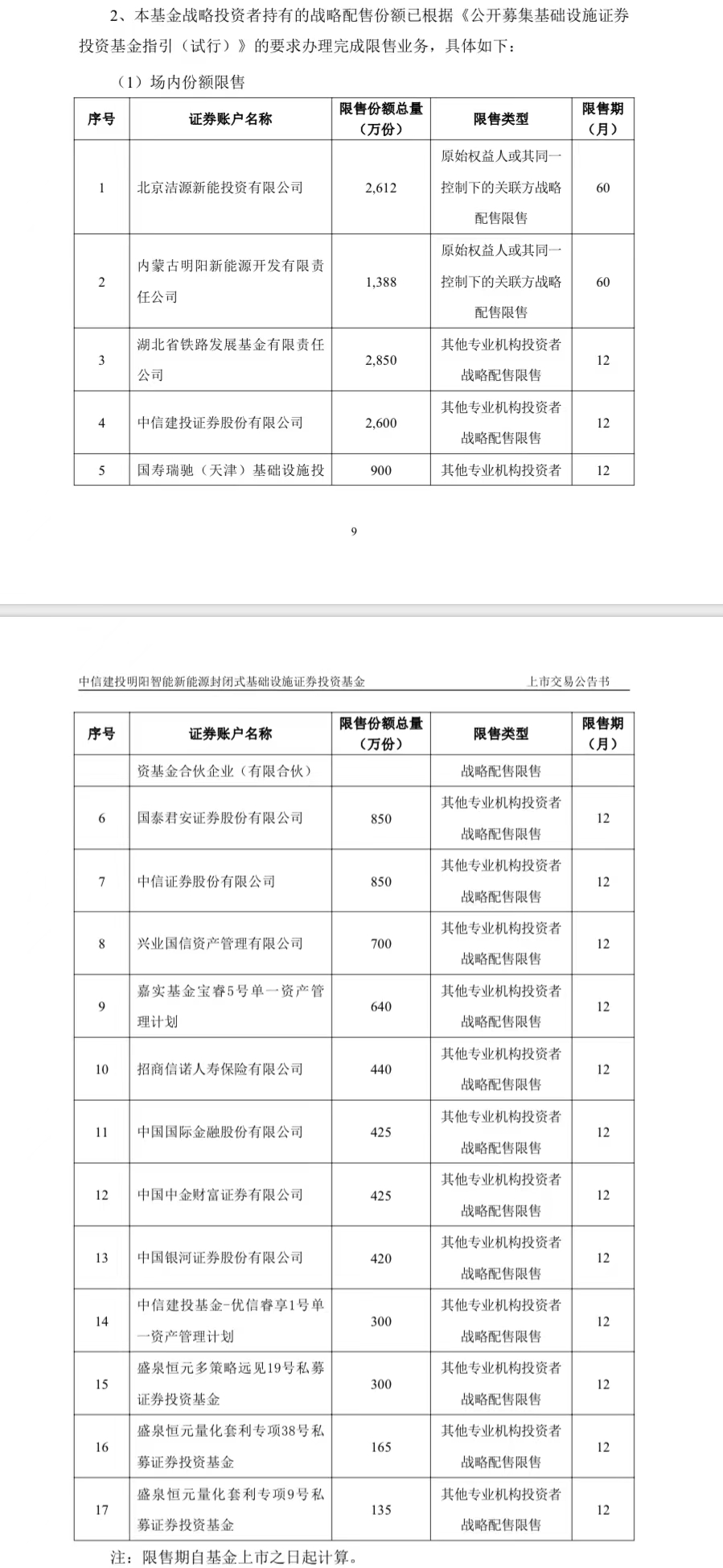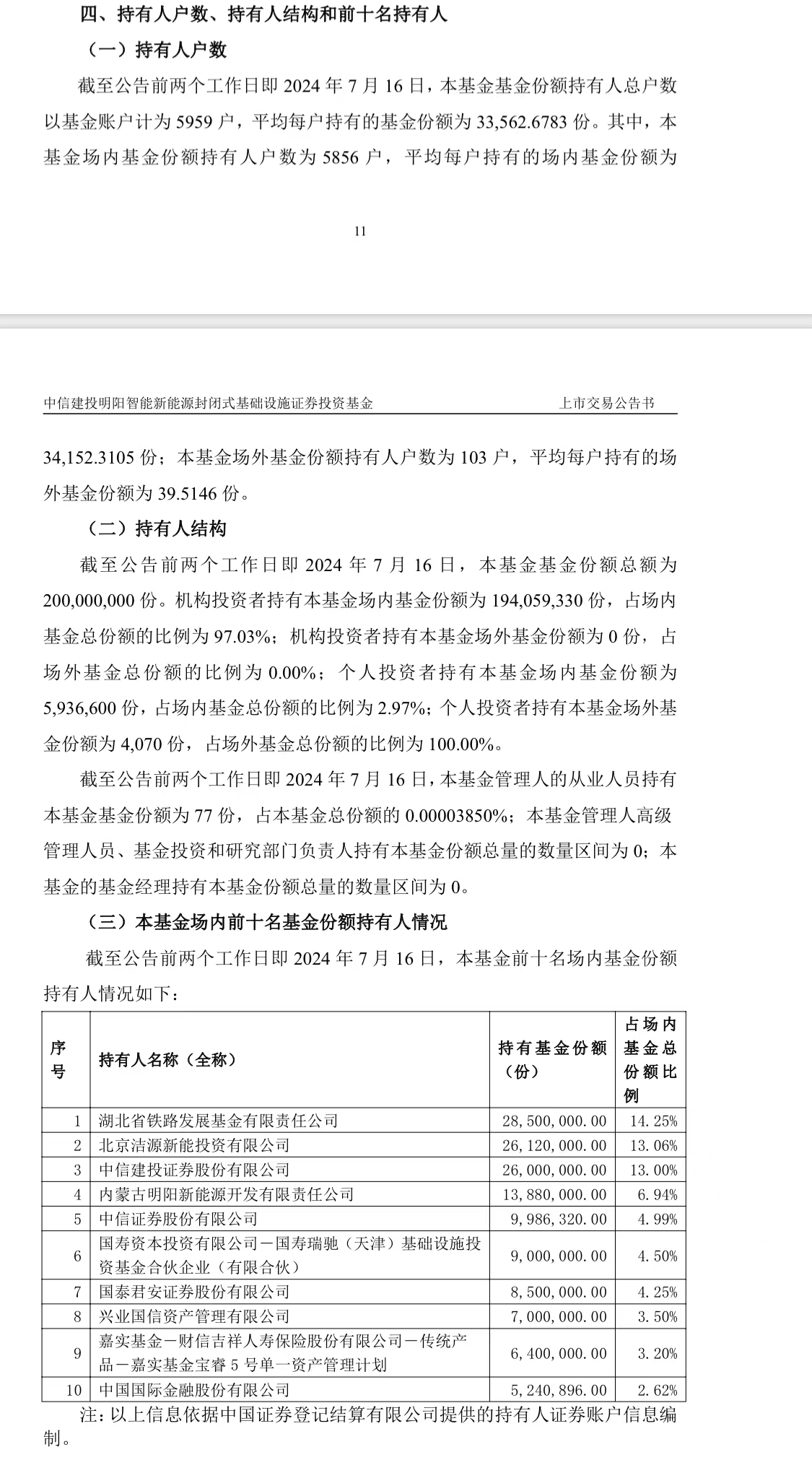 明阳REIT上市交易份额3999.59万份,限售份额1.6亿份,十大持有人都限售