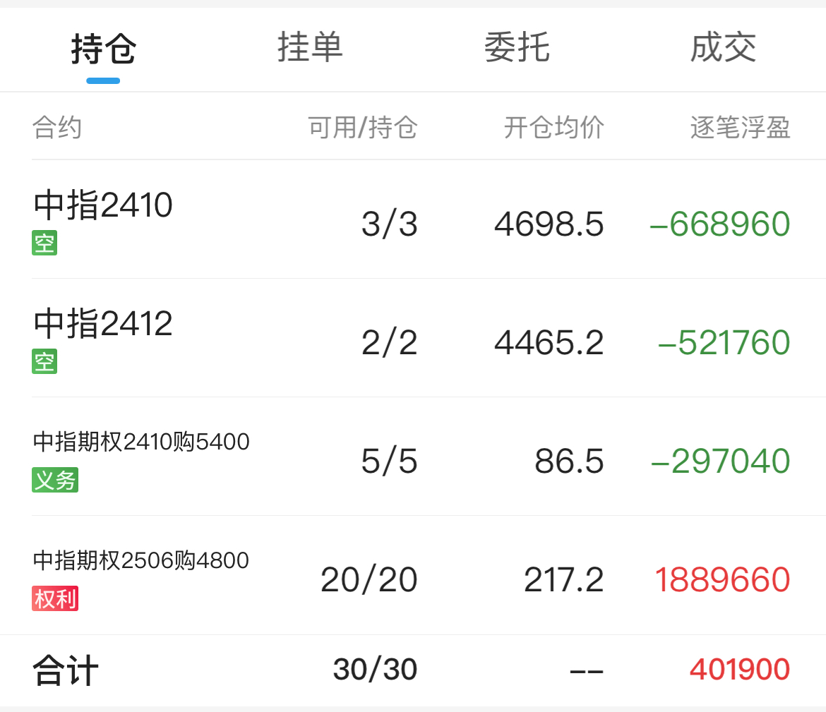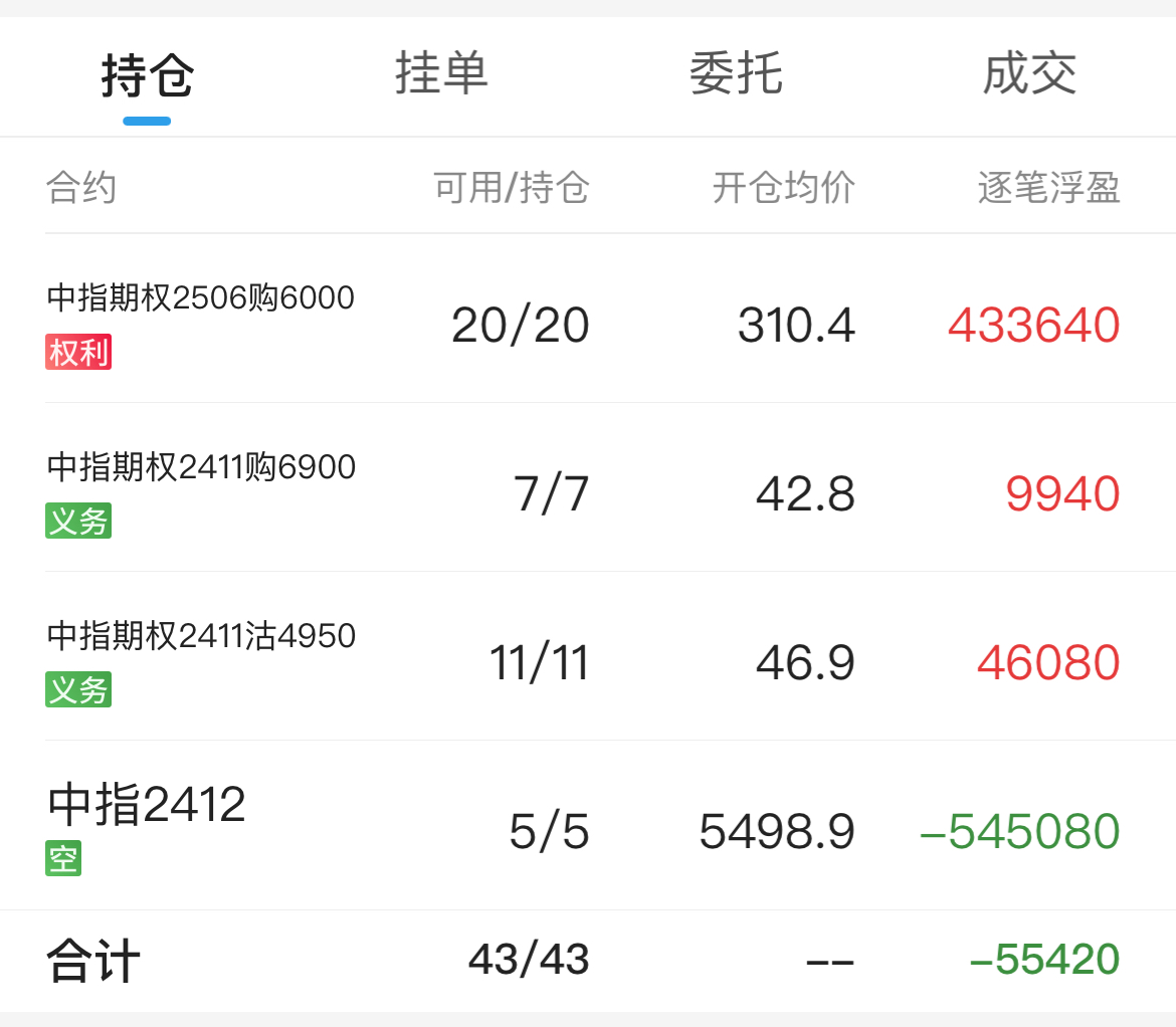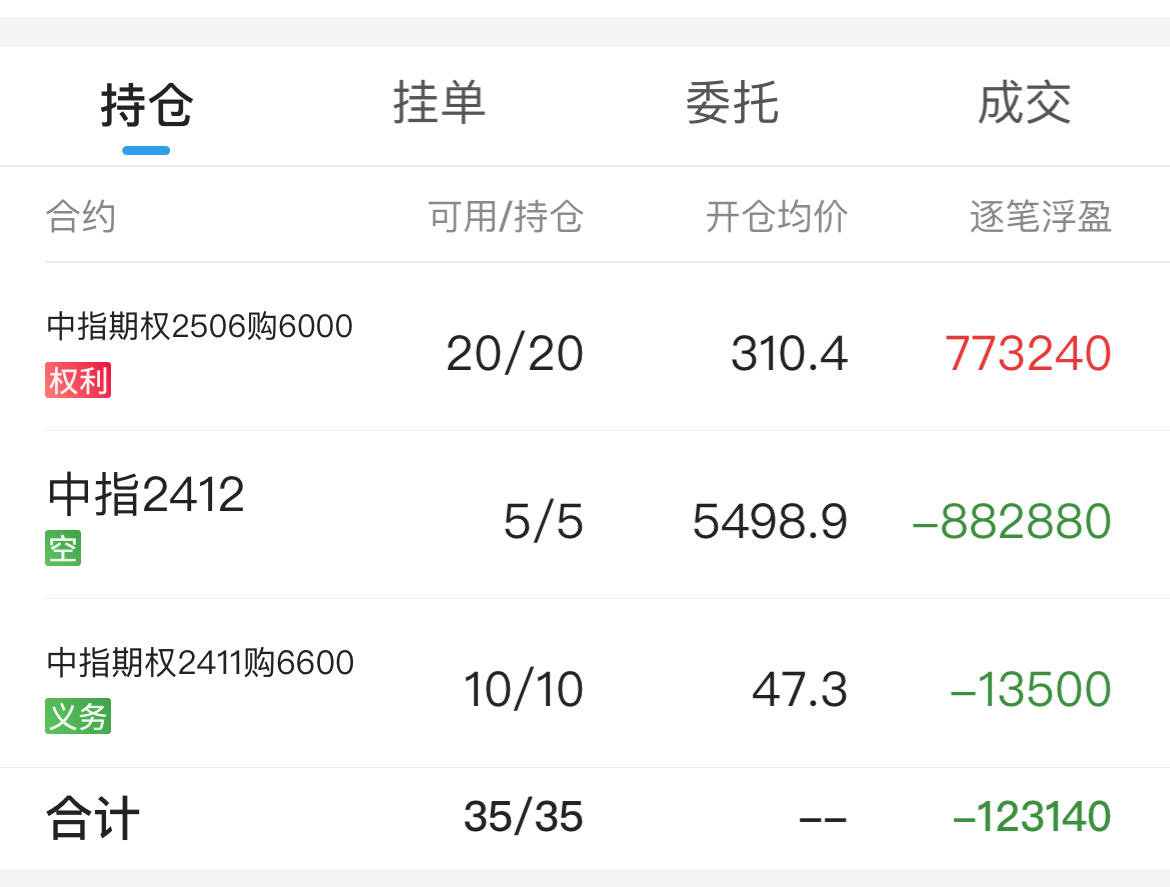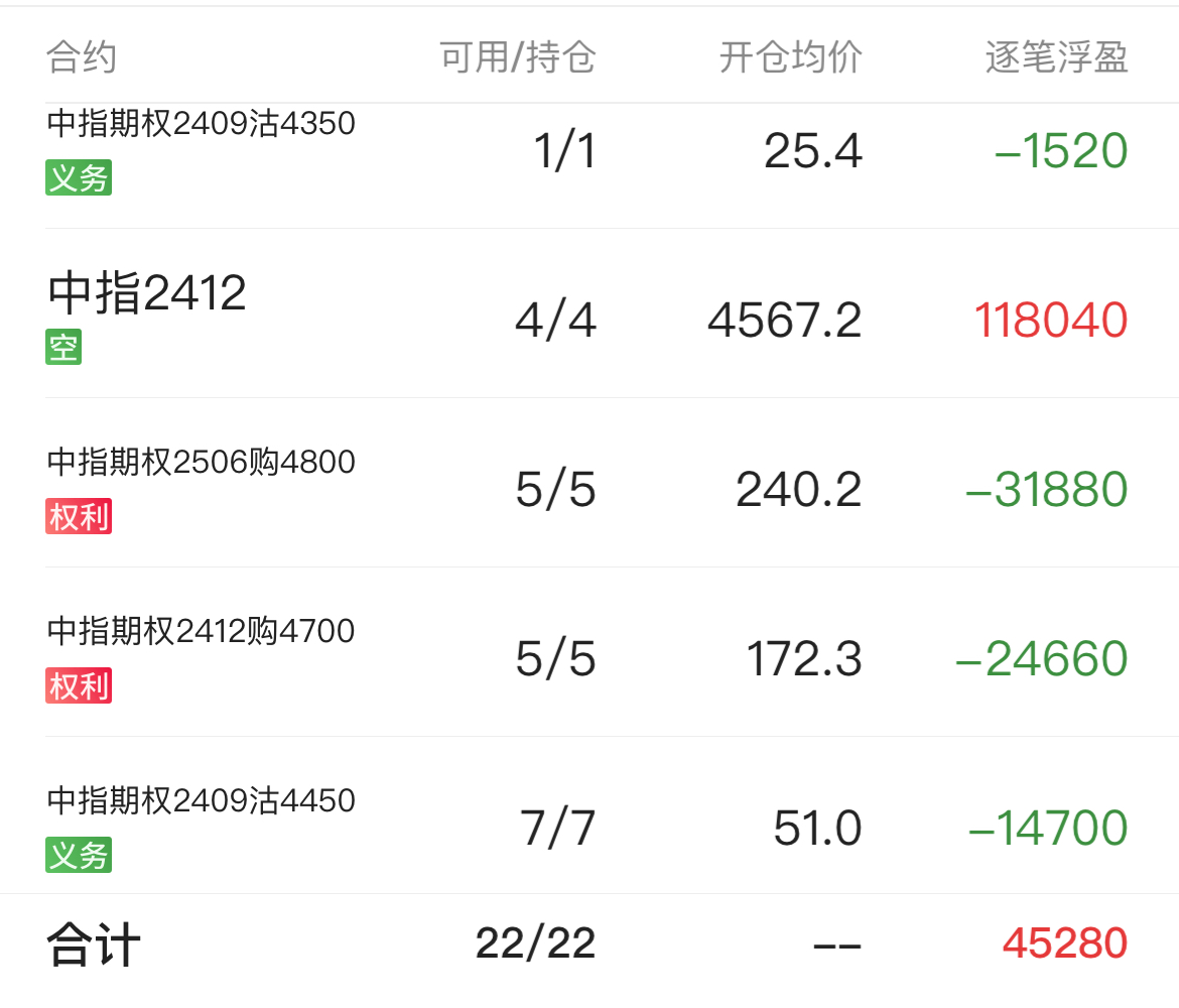 期指贴水收窄+远月认购波动率下降,浮亏五万