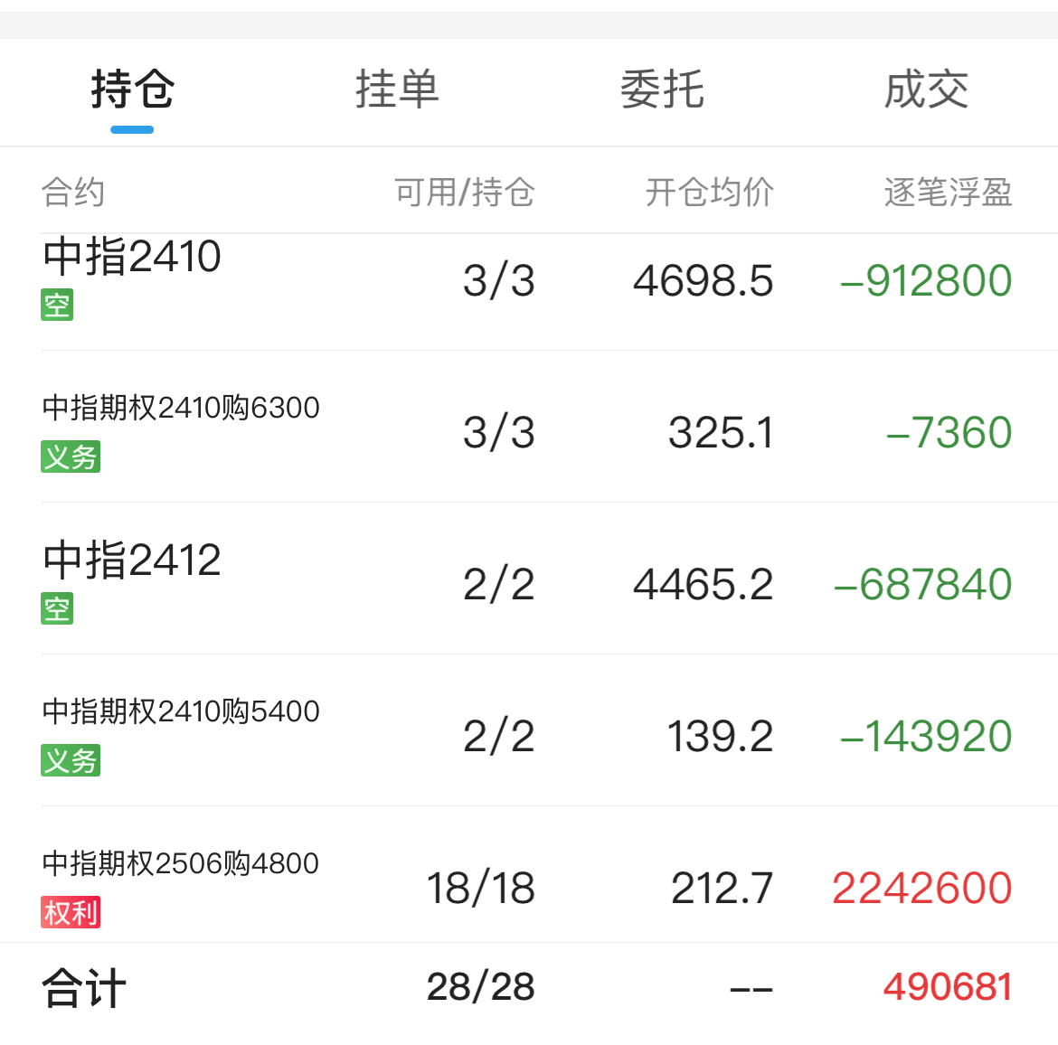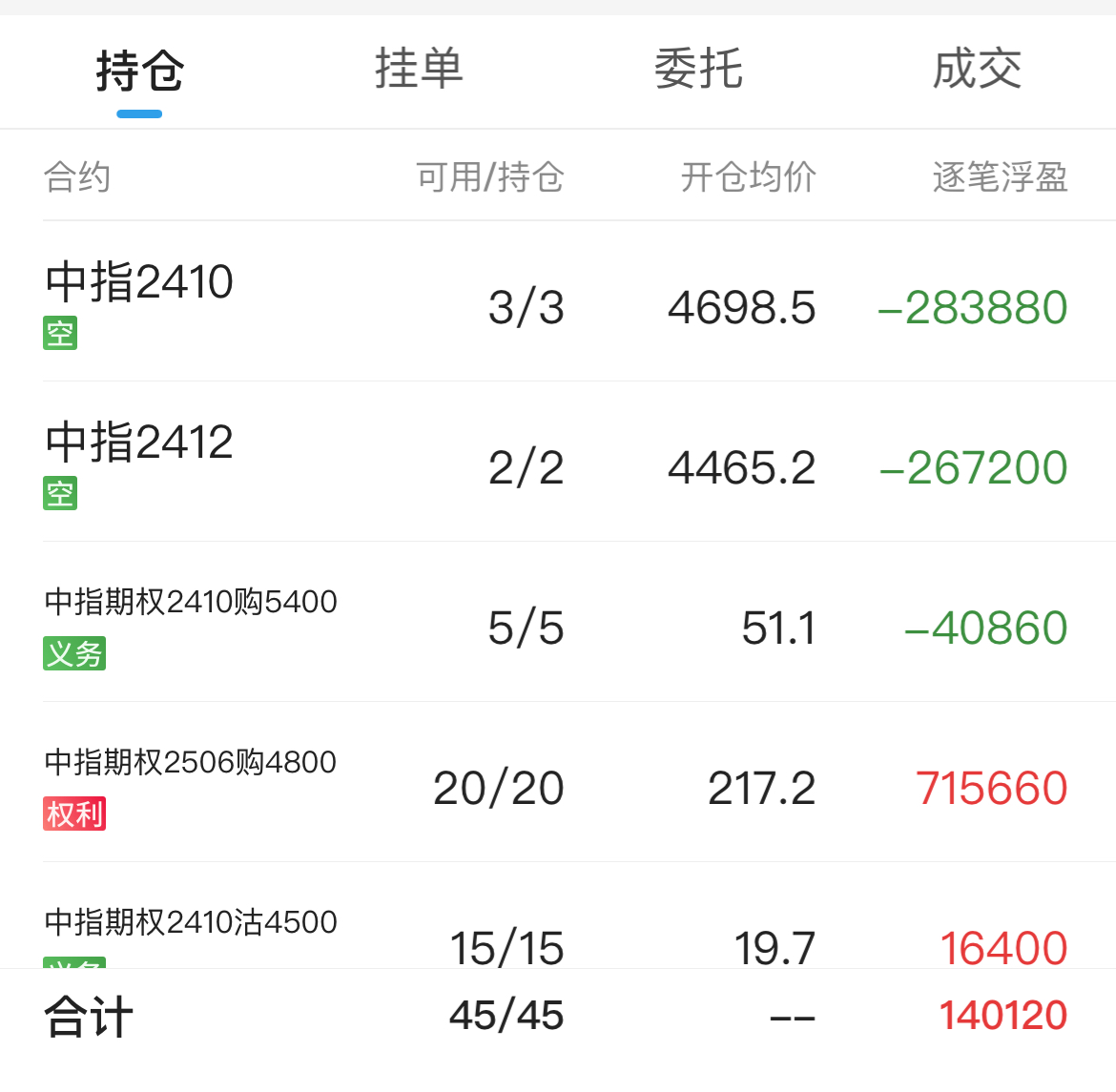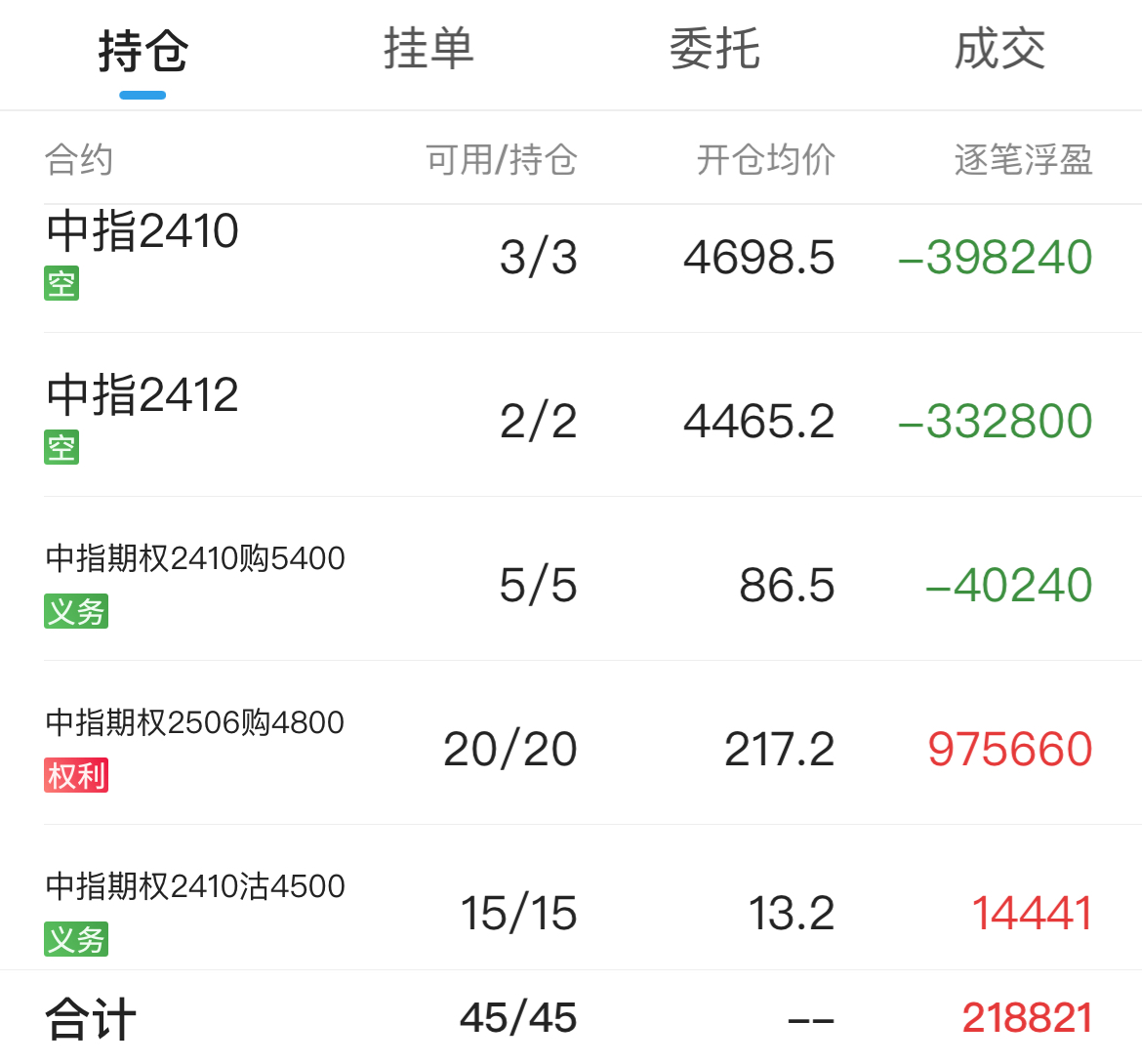 期指贴水收窄+远月认购波动率下降,浮亏五万