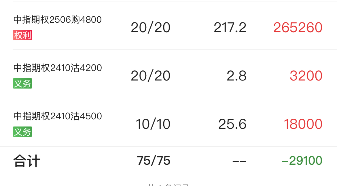 剩5张远月权利购5张10月义务购,再开了10组下月虚值熊差。 暂时休息