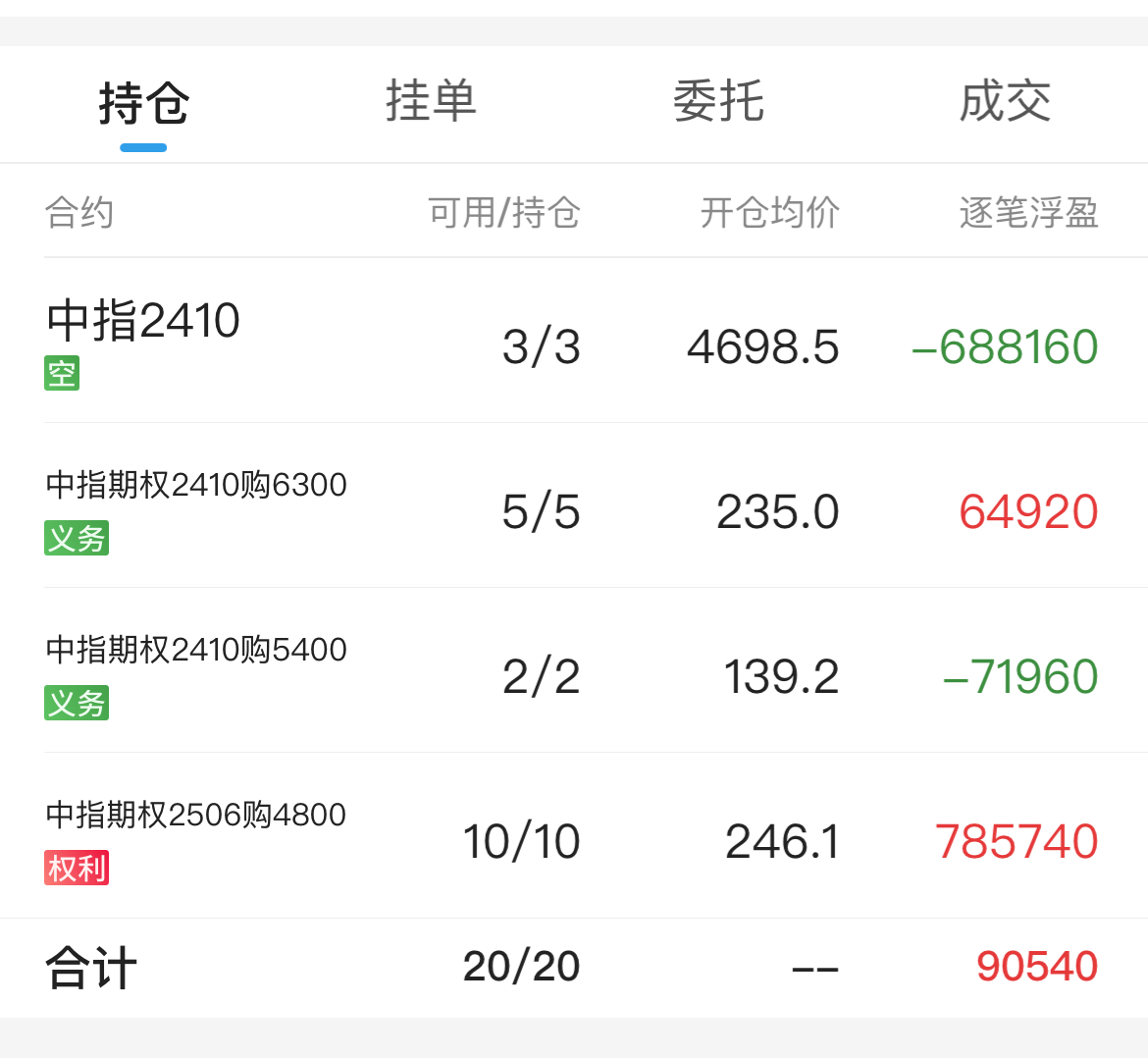 这波还是大意了,国庆期间对节后涨停开盘的说法表示不屑,没有多准备些保证金,导致10/8开盘很被动。只能先平了2张10月义务5400c,一段时间后才能平掉2张远月权利,这里头大概亏损3万,教训。