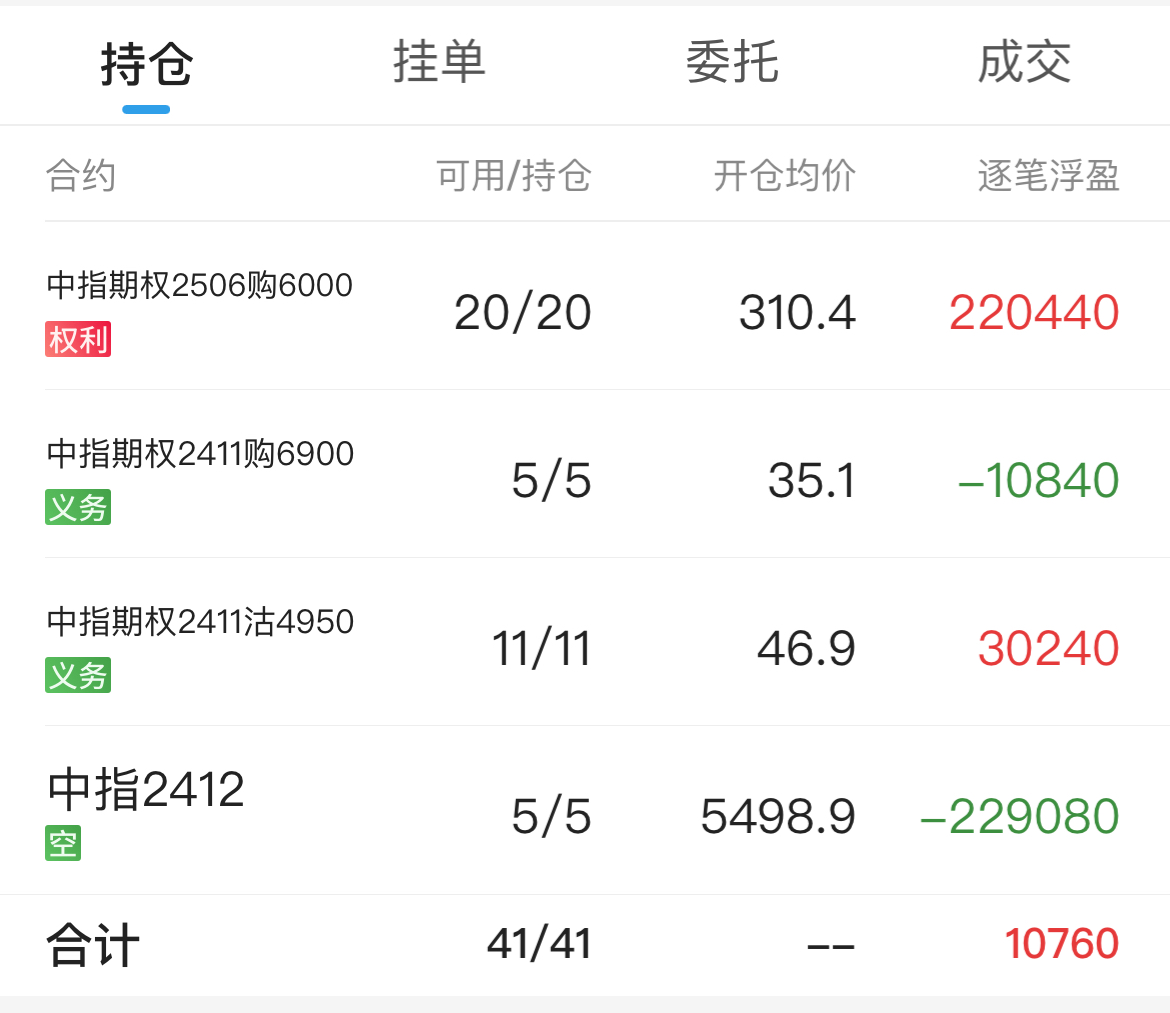 手里有15张4150九月沽权利仓和15张4100九月沽义务仓,明天准备加到30对