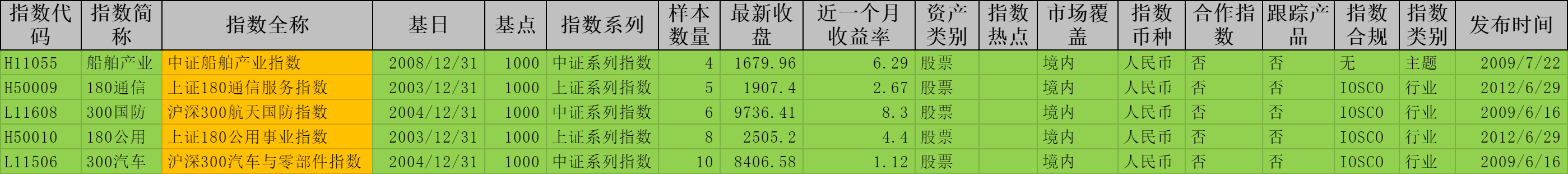 近一个月收益率大于1%,且成分股小于等于10的行业指数