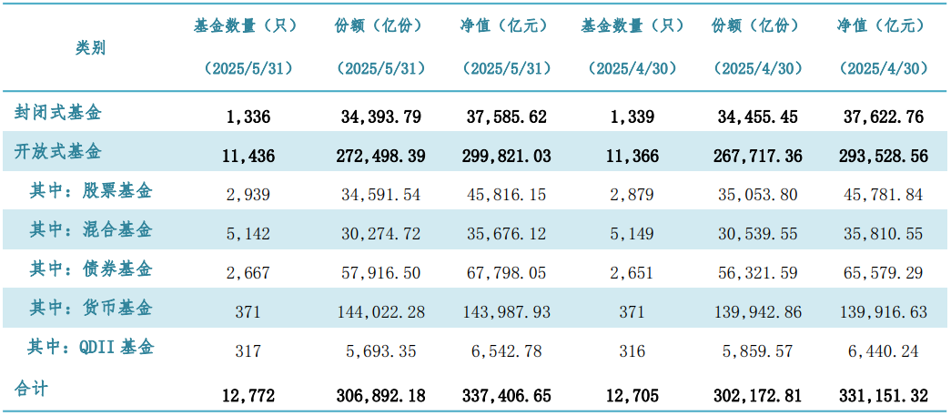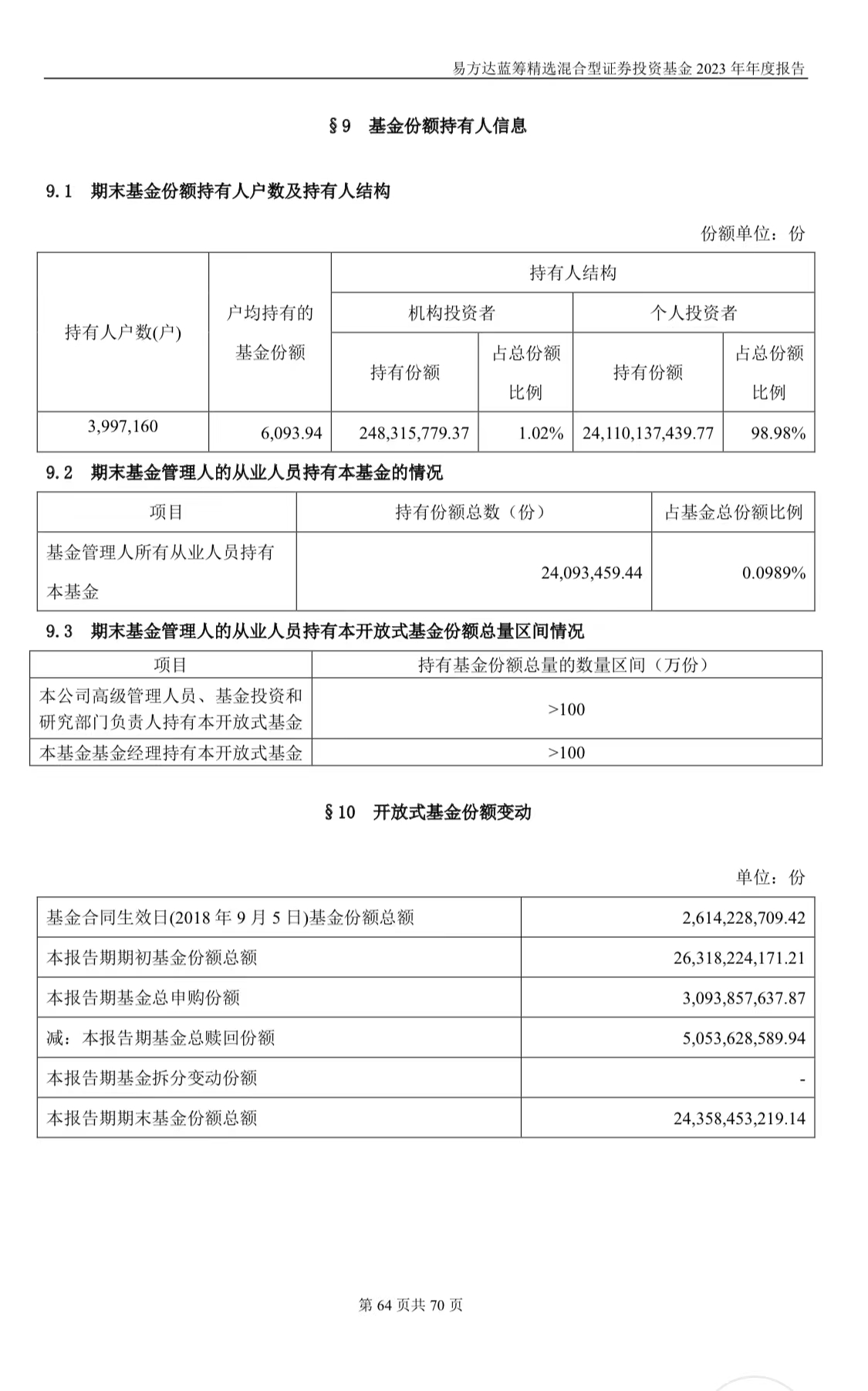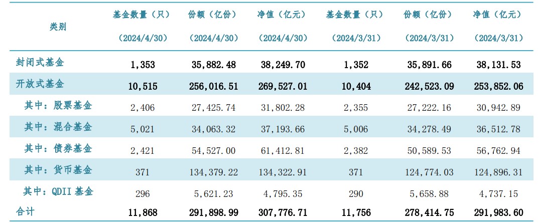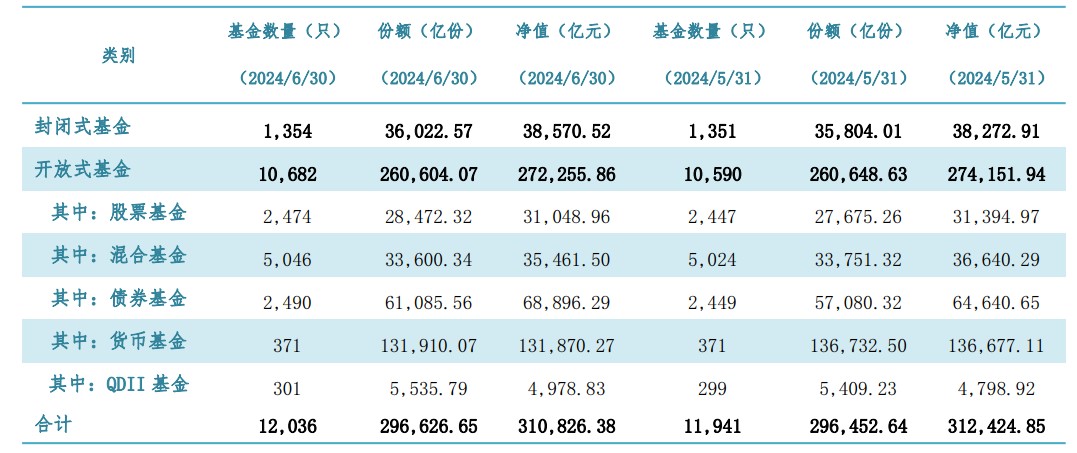 混合基金份额30,497.22亿份,较上年末减少646.66亿份;混合基金规模34,267.53亿元,较上年末减少827.19亿元。