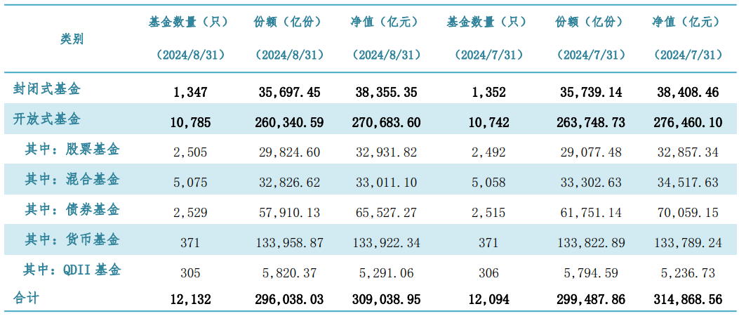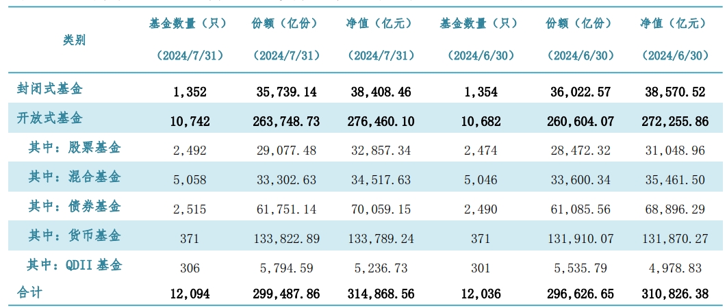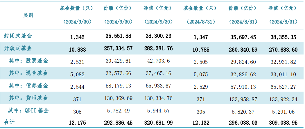 混合基金份额30,539.55亿份,较上月末增加26.46亿份;混合基金规模35,810.55亿元,较上月末减少12.73亿元。