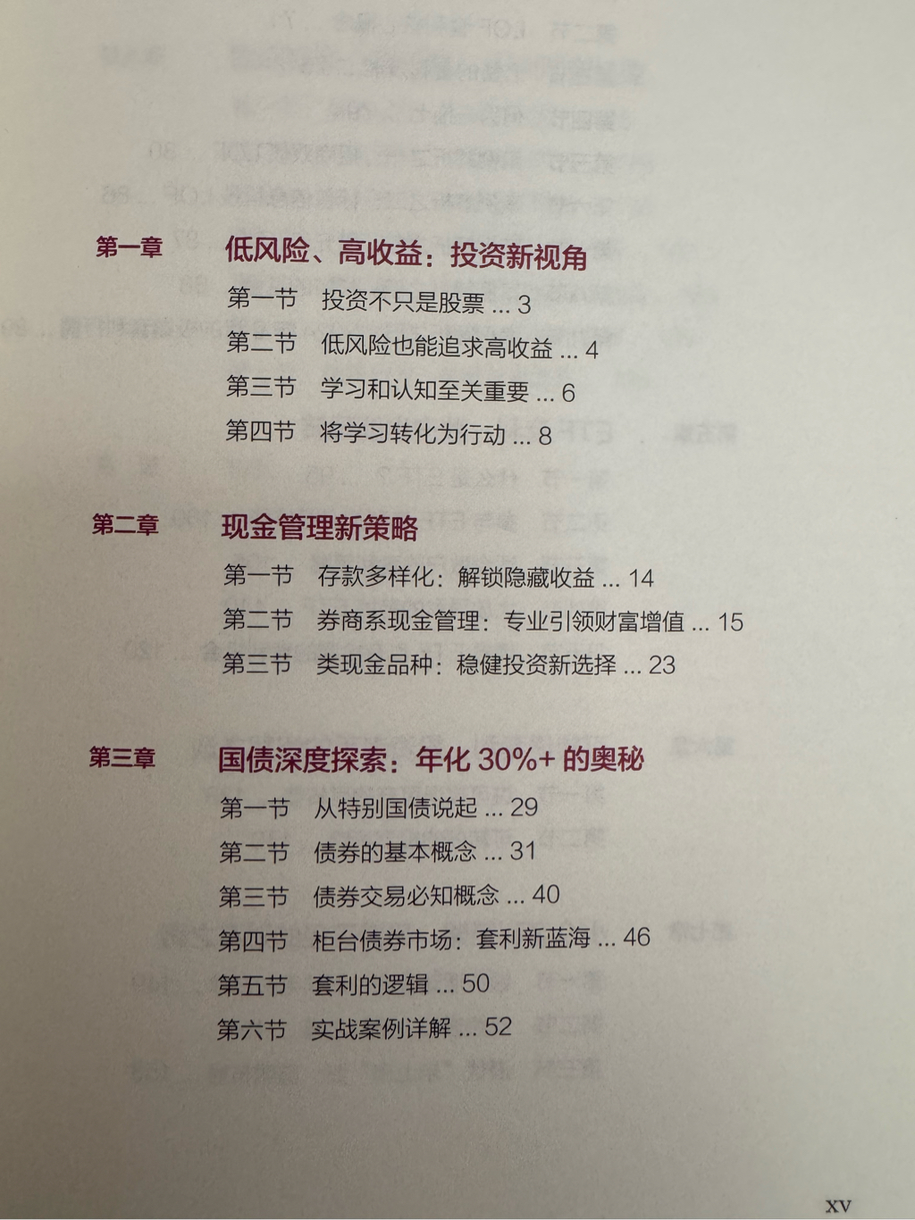 书到了,次日达,不得不说,京东的自营真的快。我花了点时间阅读了一下,读书之前,感觉找到一条成功的路,读书之后,发现原来只是一个成功的思路,花点时间写下读后感。跟我的感觉一样的,写的广泛但是没实际内容,很多像是一个品类简介,这些品类大多数是大家都知道的,而大家不知道的就不细写了,比如跨交易所间国债套利,这个是有利可图的且知道的人少,这个就没具体写了,不是不能写内容,应该是写多了做的人多了会影响自己的收益