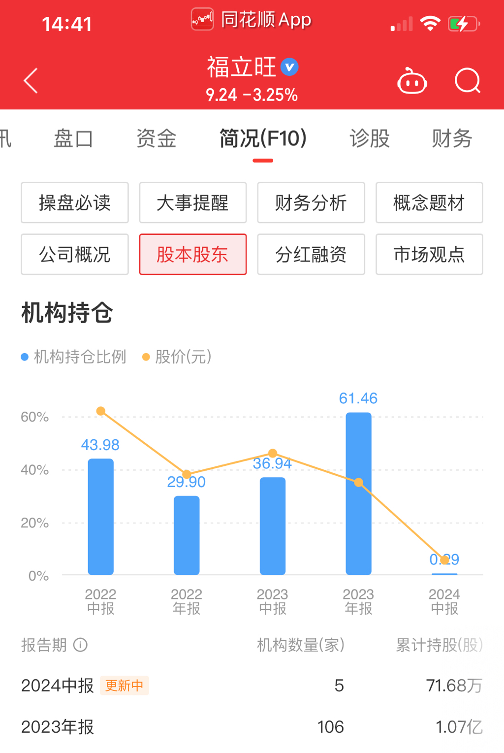唯一的安慰之处,公司是盈利的,但这半年机构全跑了,机构持仓从61.5%降到了0.3% ,鬼故事安排中?
