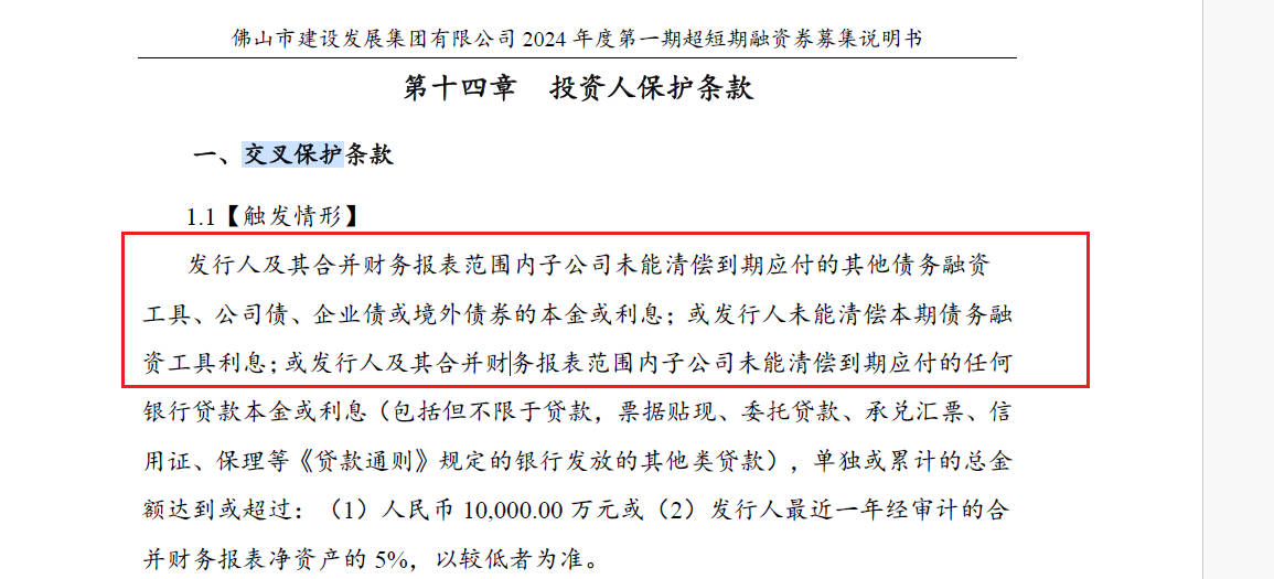 假设,我做为佛山建设相关债券的投资者,我会因为一个占股35%的子公司债务违约而要求珠三角城市城投佛山建设发行的公开债券加速到期吗?现在的大背景是资产荒,加速到期其实是亏钱的。即使没办法无条件完全豁免,也可以让佛山建设加息。所以这个交叉条款的制约性并不高。