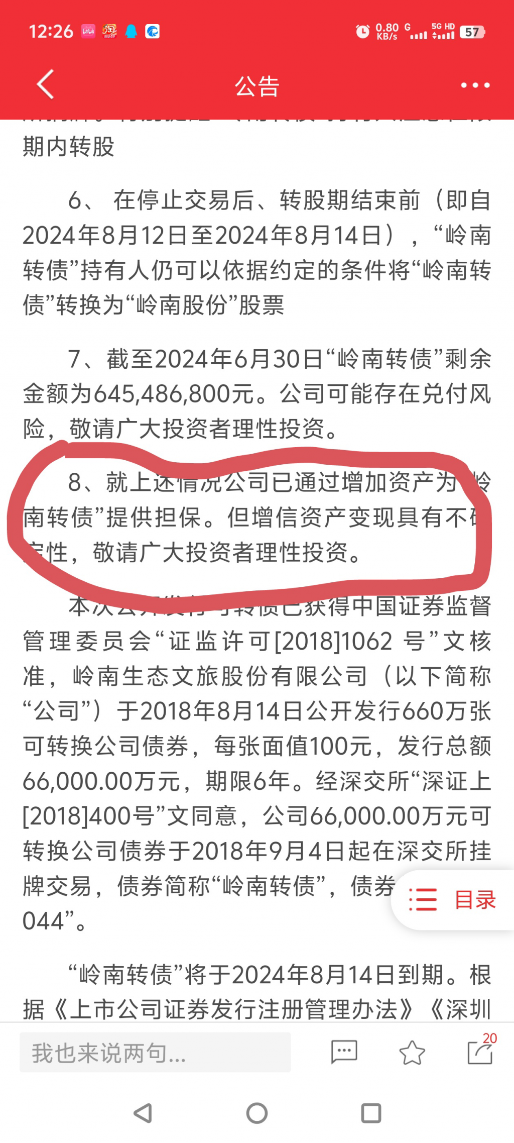 岭南,我也打了好几个电话。对方确实信誓旦旦。我们会尽力促进转股,最后做好兑付工作。