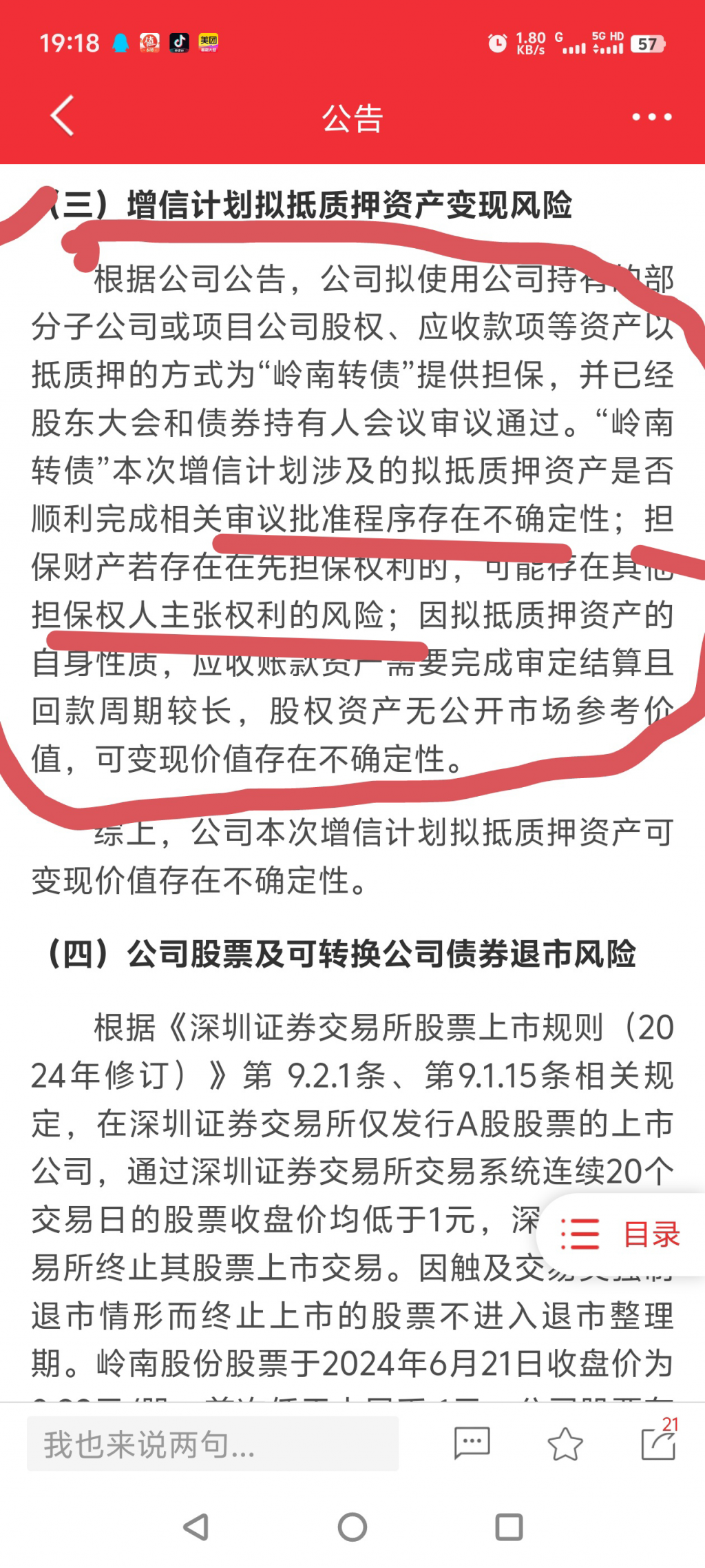 上次楼主问我。基于岭南说的“严格兑付”是否会买入岭南的时候,我回答的是我一分钱都不会买。大家知道我是很少这么肯定的回复别人的,因为我怕我的回答会误导别人。但是岭南这个不一样,他们钱一直没有到账,甚至连安排都没做,这么多钱,如果没有提前筹划,肯定是不行。所以我回答一分钱不买,我说的这么明确,其实是怕你误导别人。岭南互动易那个答复就是正常套话,含着无限可能,他没说能兑付,而他们公告里面反复多次的说公...