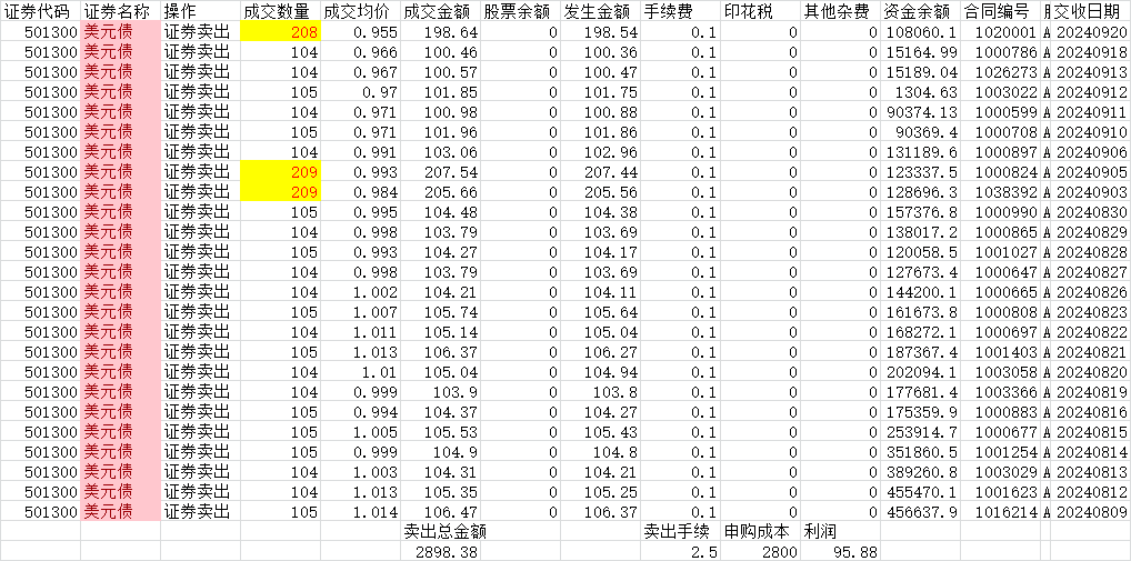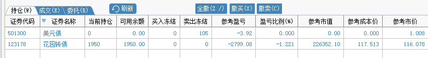 2024-09-19 下午零交易,我去,忘了,501300 美元债还没卖出去,囧,最后一车亏钱了,还忘了卖