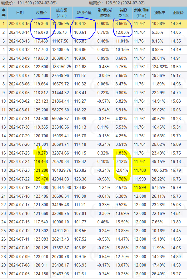 不过看看不少溢价率小于5%的债,也就是那句传说:大人,时代变了,溢价率暂时回不去了