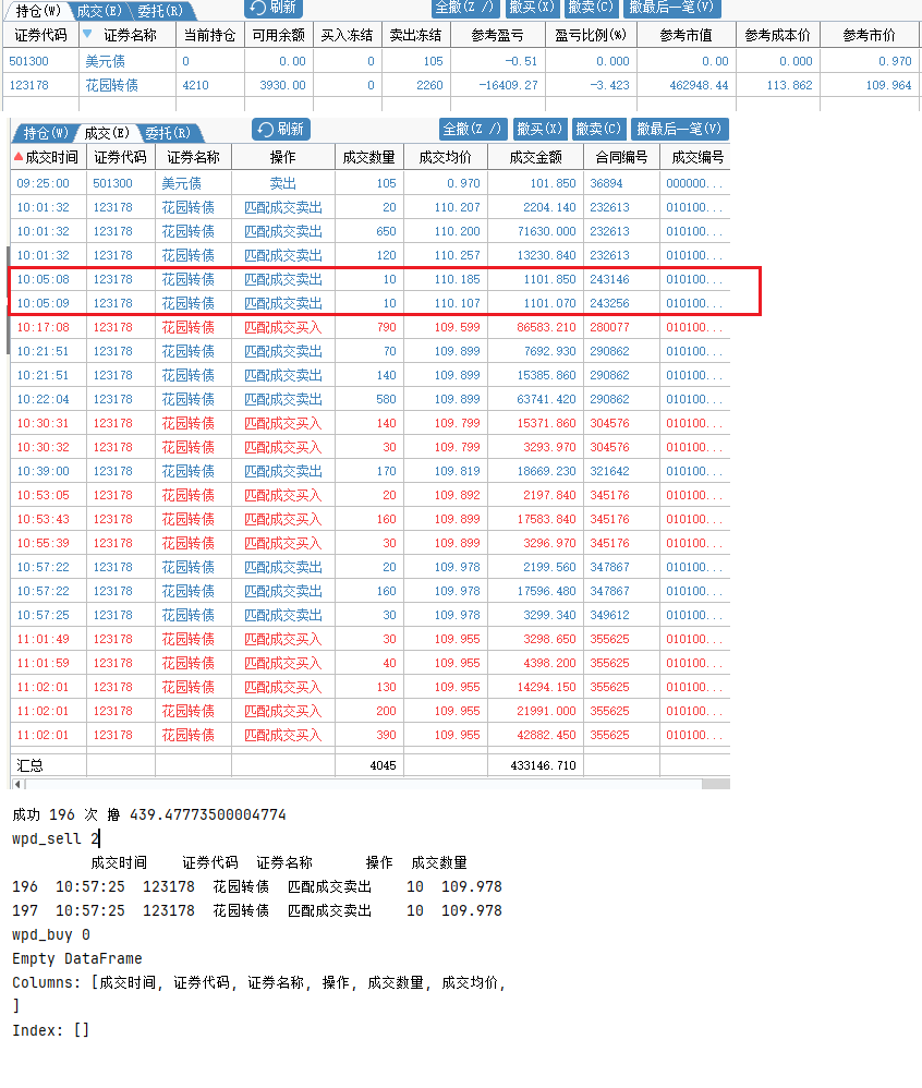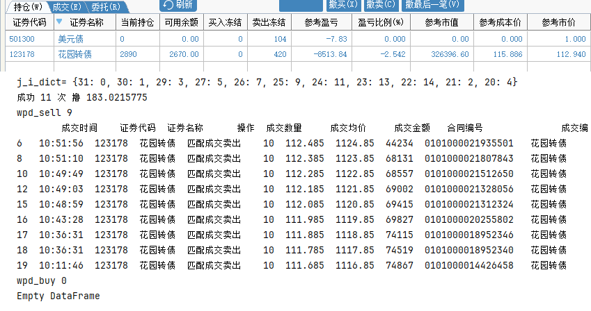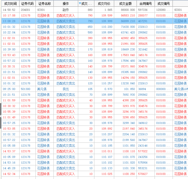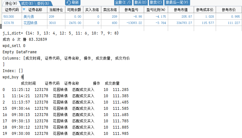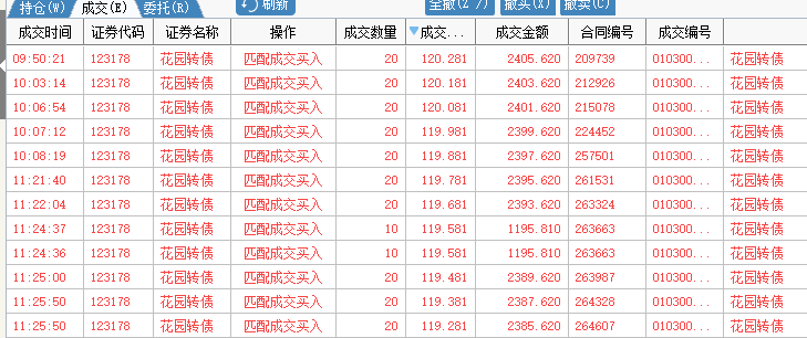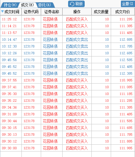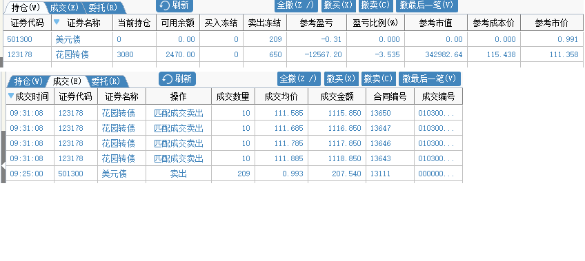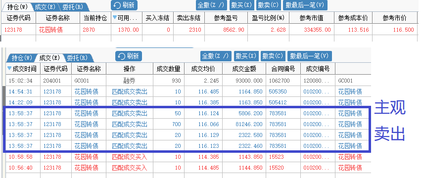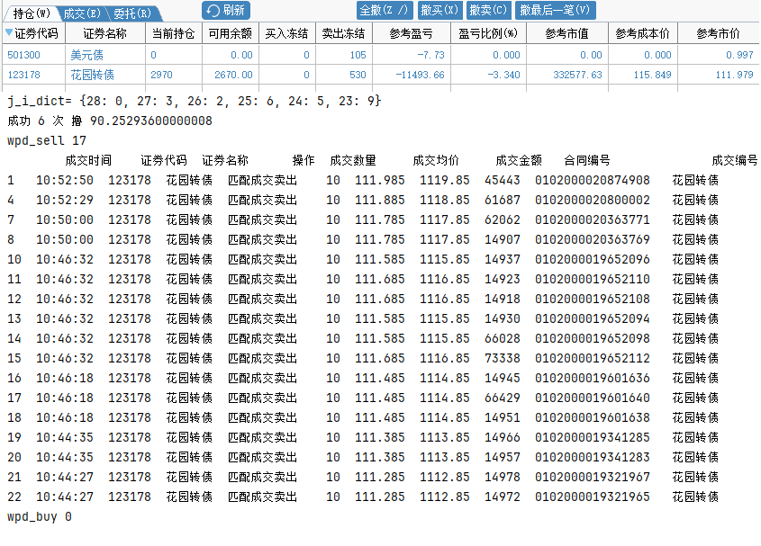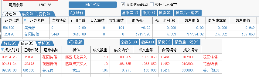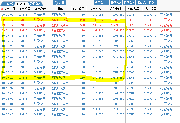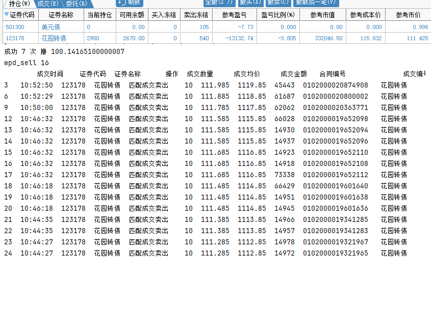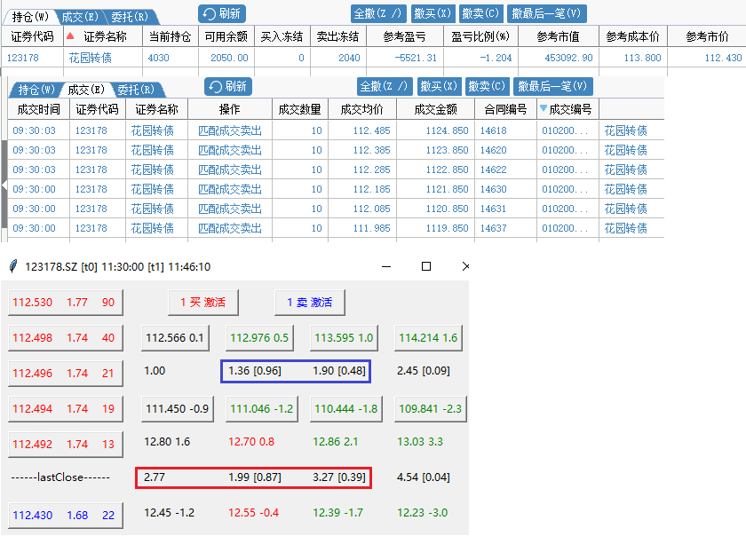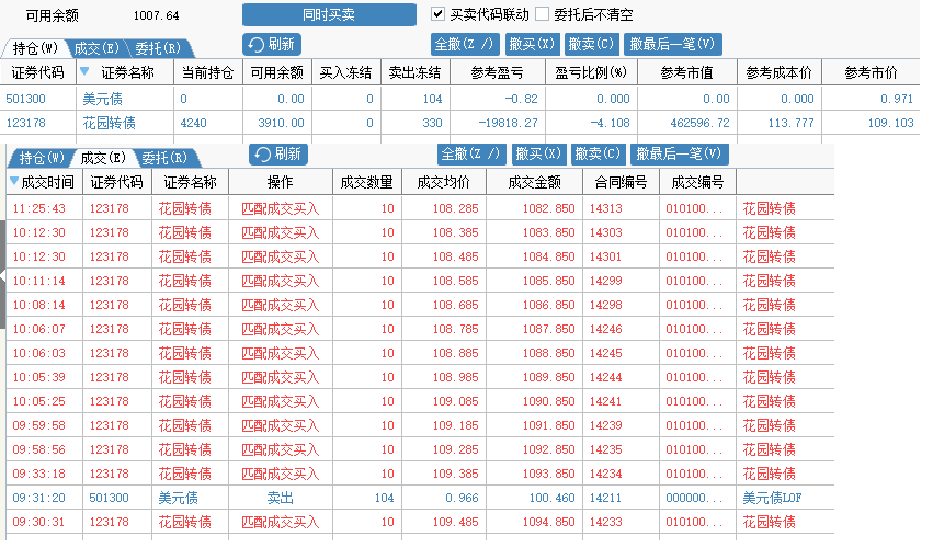 不过另一面也是指数、股民,债民不给力,而我设置的条件单又高了一点,用115.46与108.2的中值111.83,这比今天上午的最高价和还高0.33,最终眼看着巨幅回落,最终看着要破110.2无奈含泪割肉,然后进进出出,反反复复,心惊胆颤