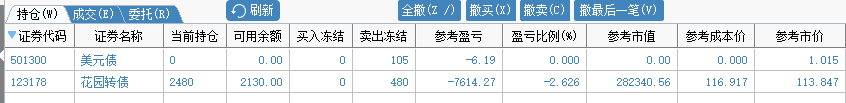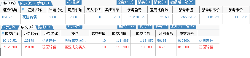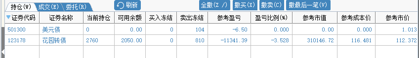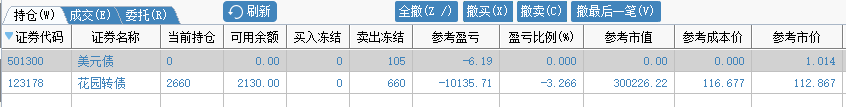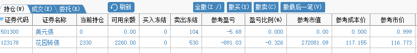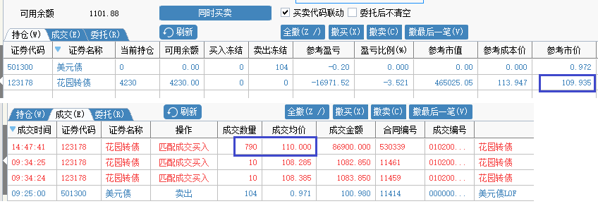 以109.999 割肉 昨天 110 手工加入的790张可转债