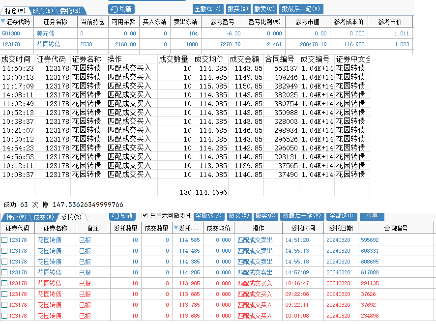 这是假的,比较真的是差价交易,成了63对,大概能搞出差价147元