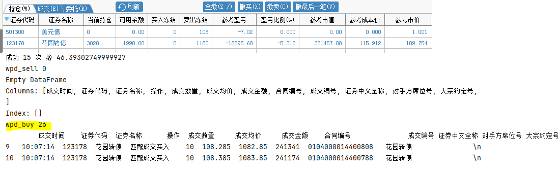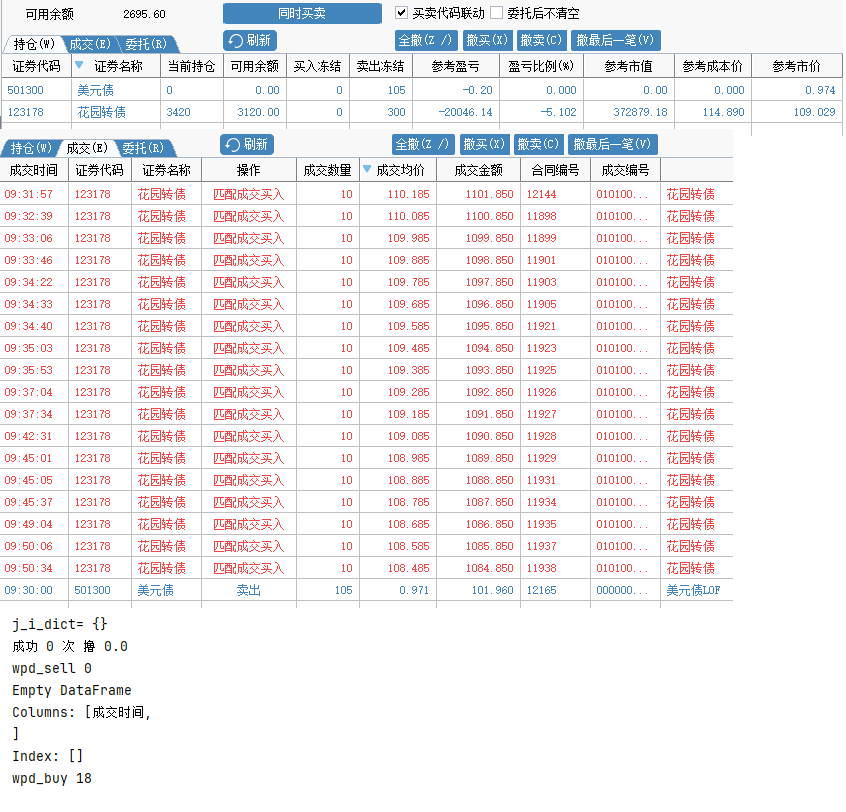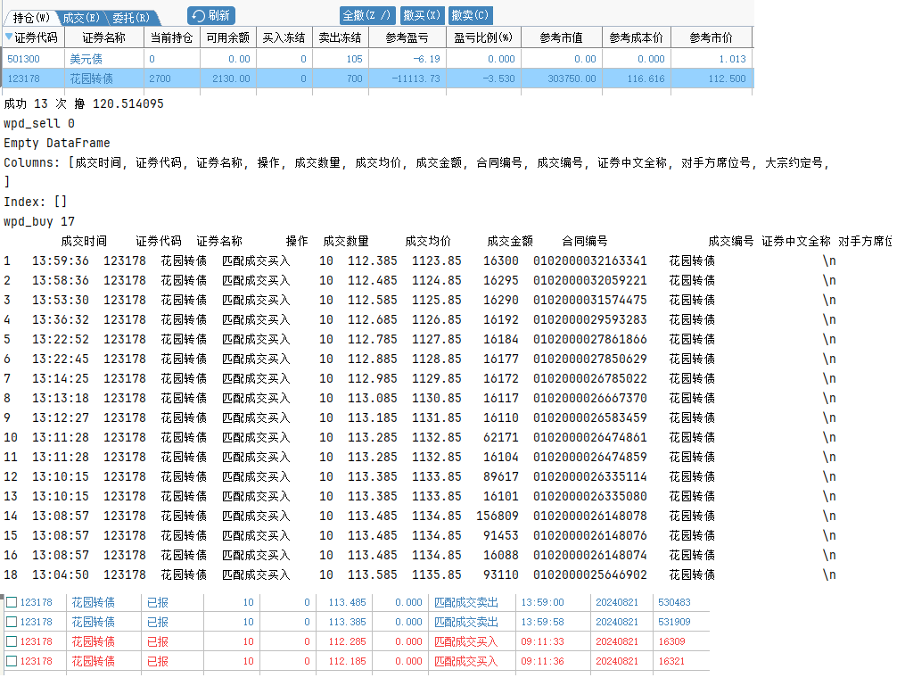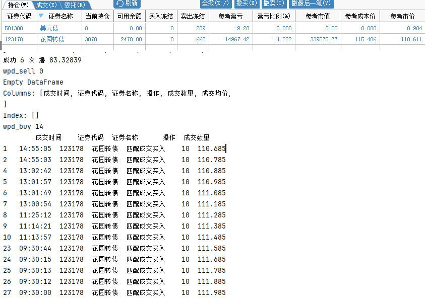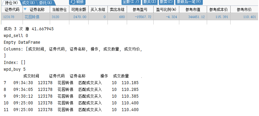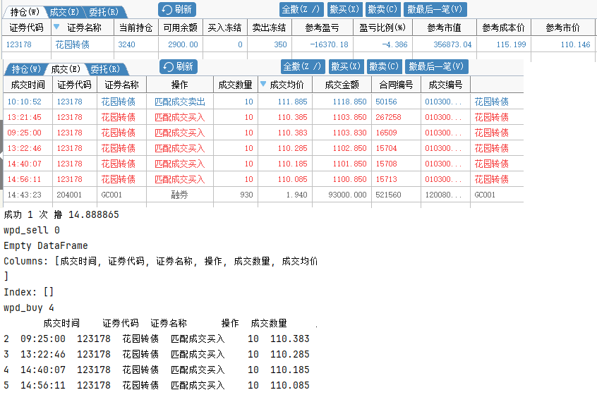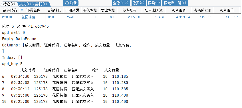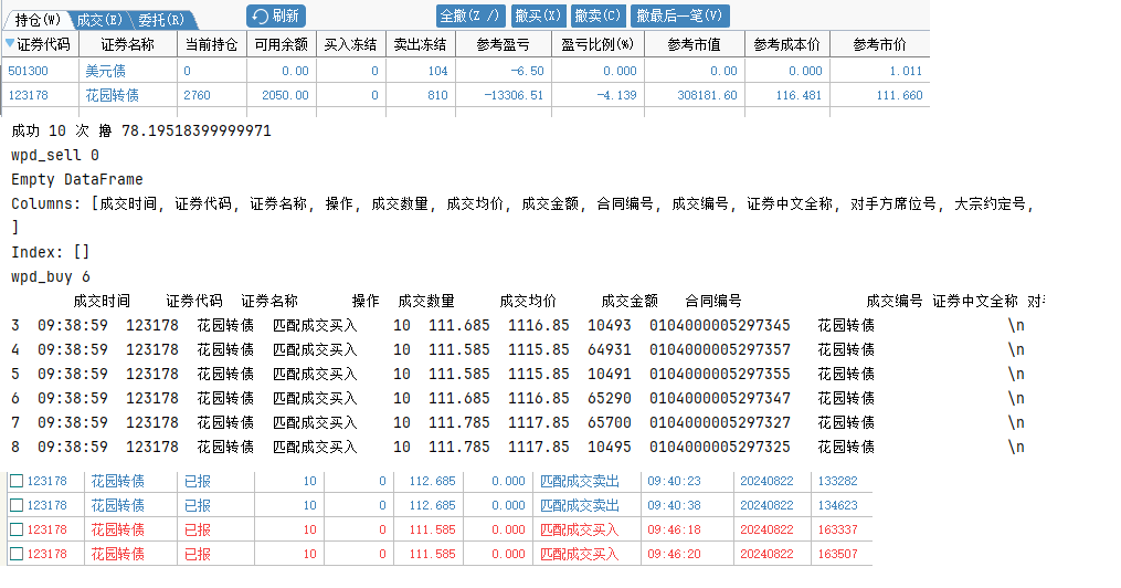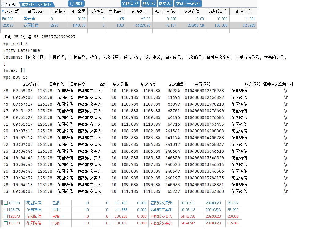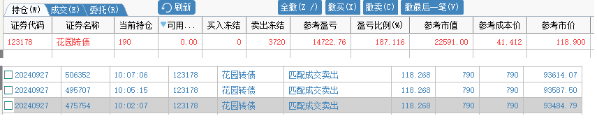 2024-09-25 中午收盘 主观交易1580张,就撸了2毛差价,因为开盘QMT登入不了,行情源就没了,后来咨询了客服终于连上了,但可惜的是轻舟已过万重山。另外被动卖出290张