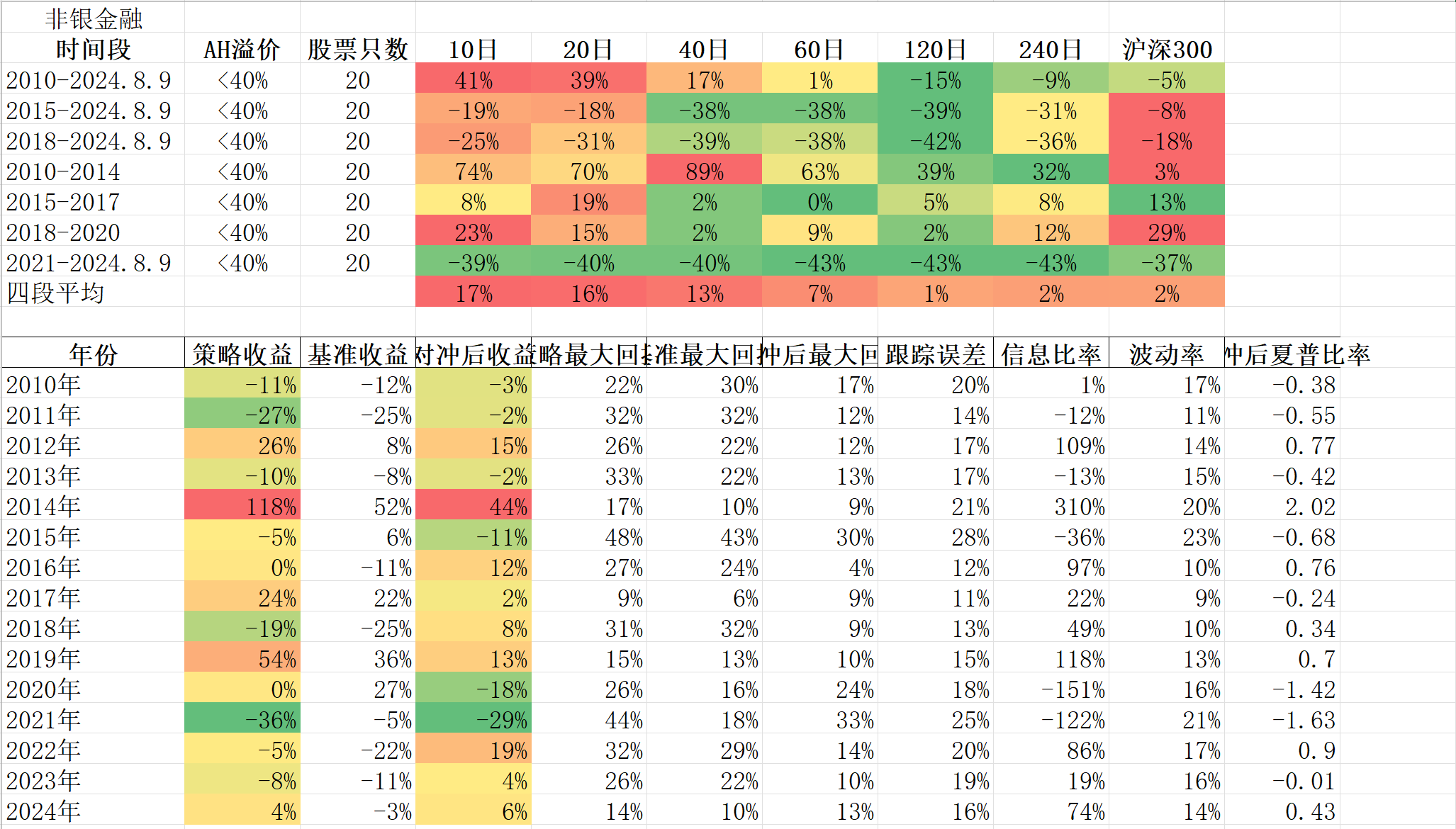 21-24年熊市,300暴跌-37%,这个策略就靠着AH溢价低于40%,仅靠选股,实现了31%的正收益。
