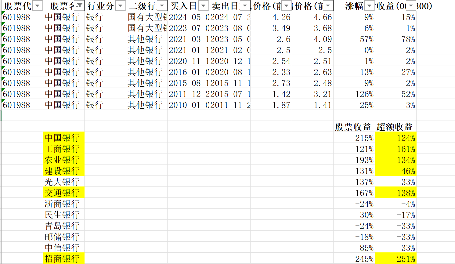 把个股拿出来看一下,工农建中交招,都是有显著超额的,其余的不大行。