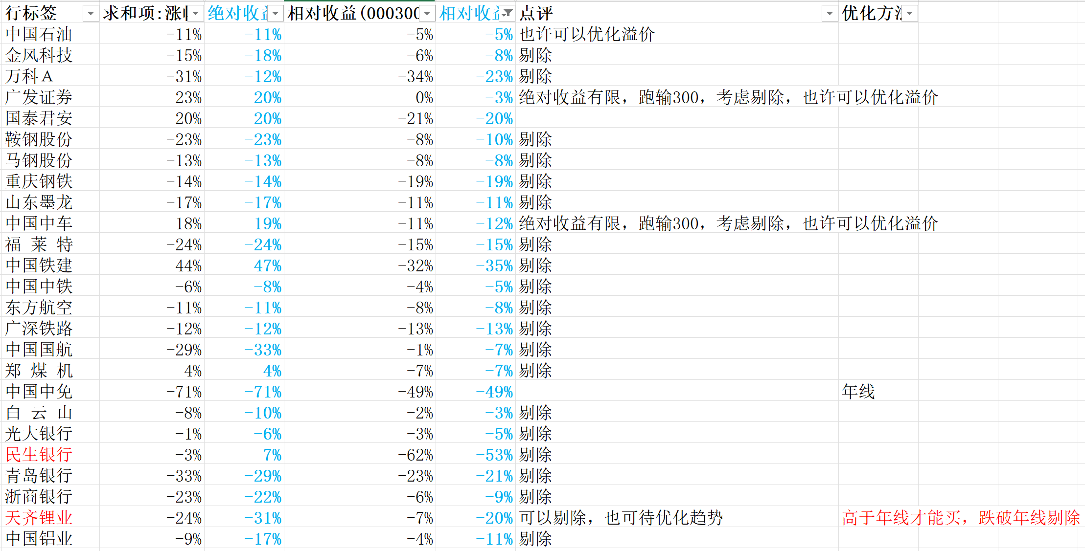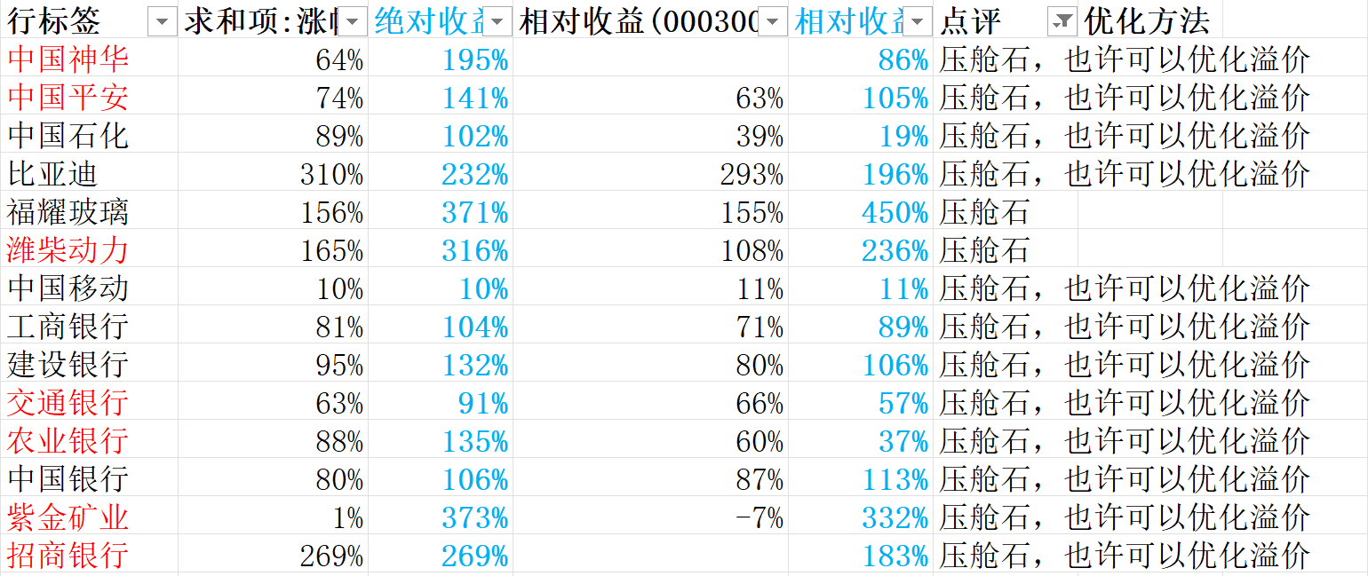 2.绝对收益和相对收益都不错,绝大部分时间都呆在池子里的老油条,如招商、平安、海螺、神华,也许可以优化一下溢价率,调低一点,到30%,看看能否有改善。