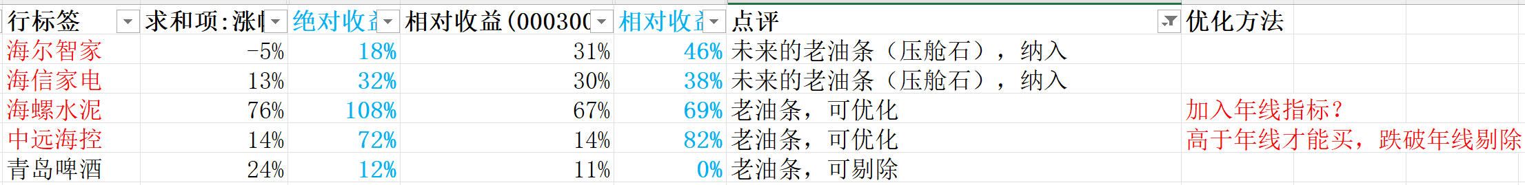 这里有入池子时间较短的海尔、海信,估计未来会变成压舱石,也难以优化。