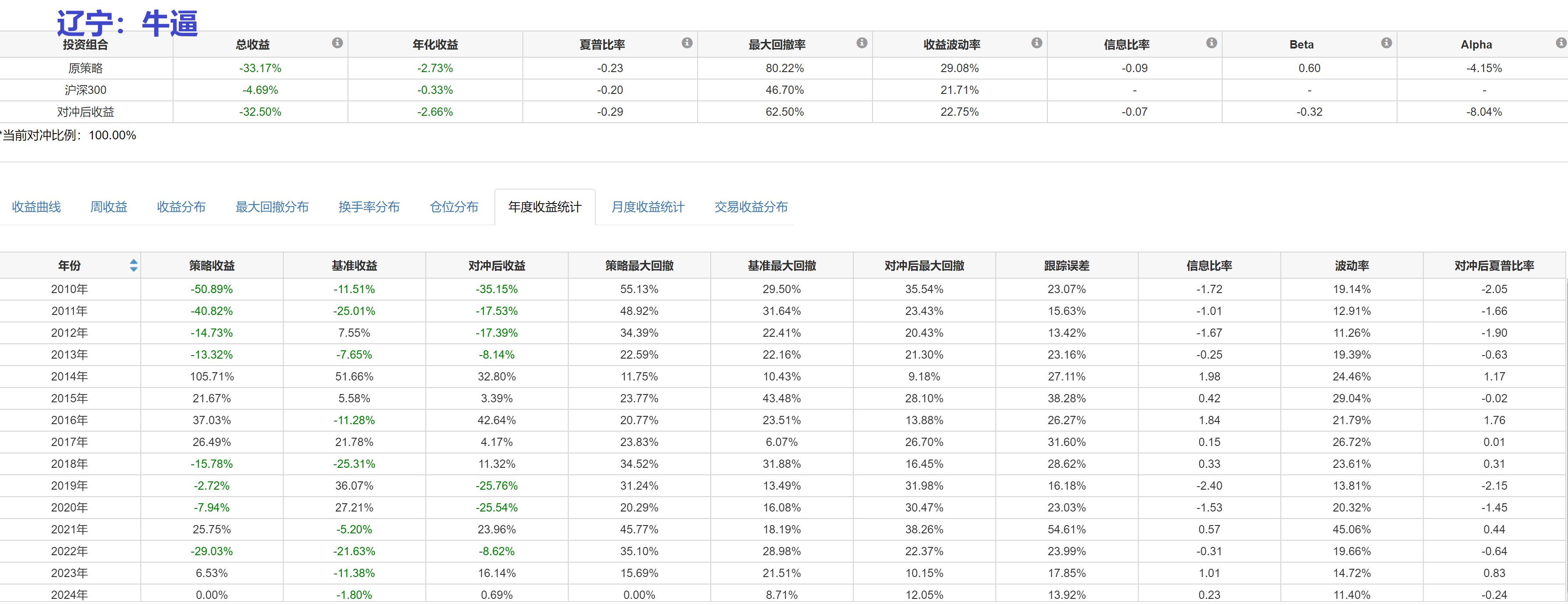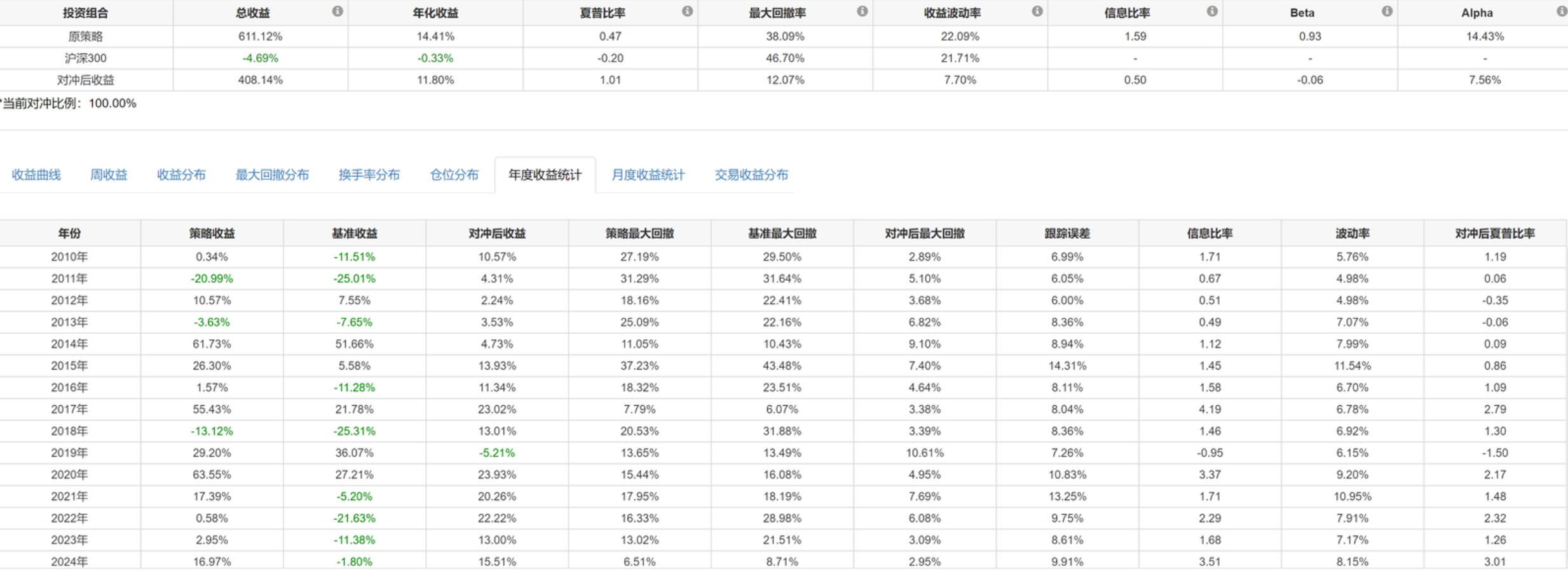 年化提高3%至12%,同期300没动,最差连亏2年,年度最差-22%。