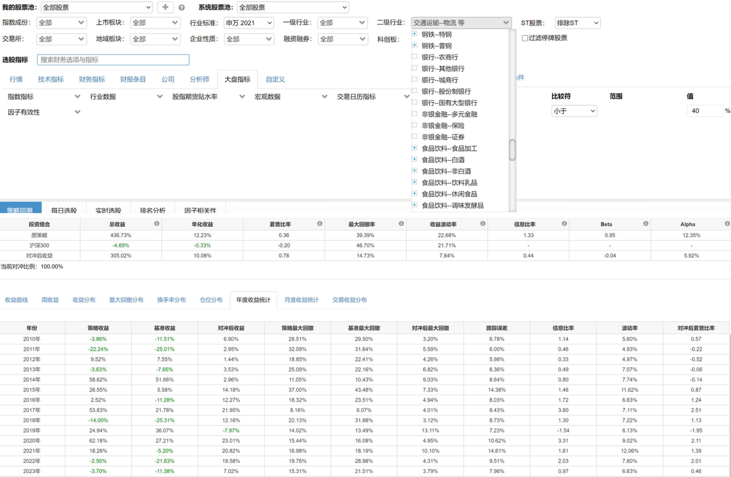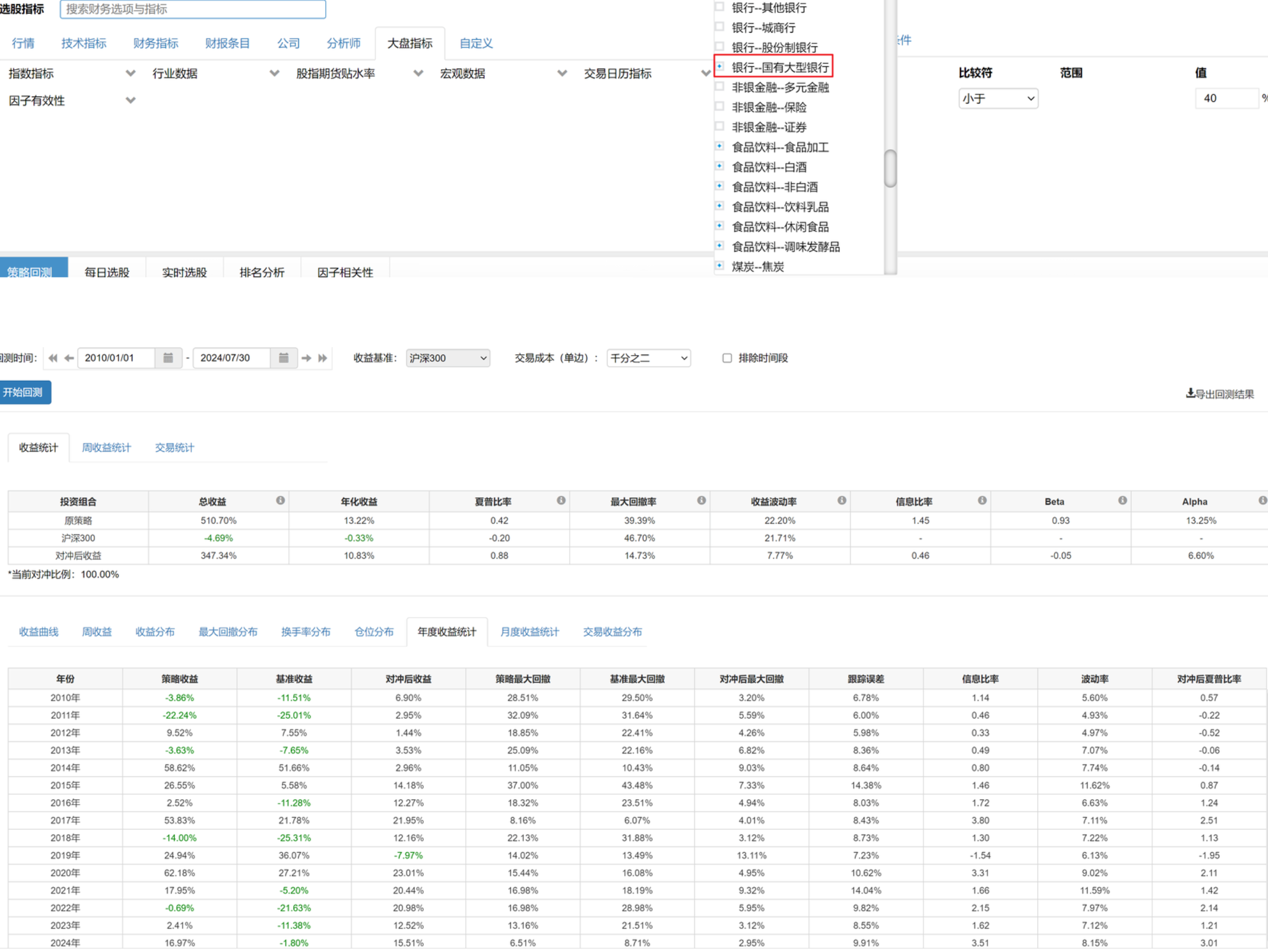 存疑:回测数据里,用的申万2021行业数据,21年之后,四大行才被选入,而这几年四大行表现较好,可能有过度拟合嫌疑。