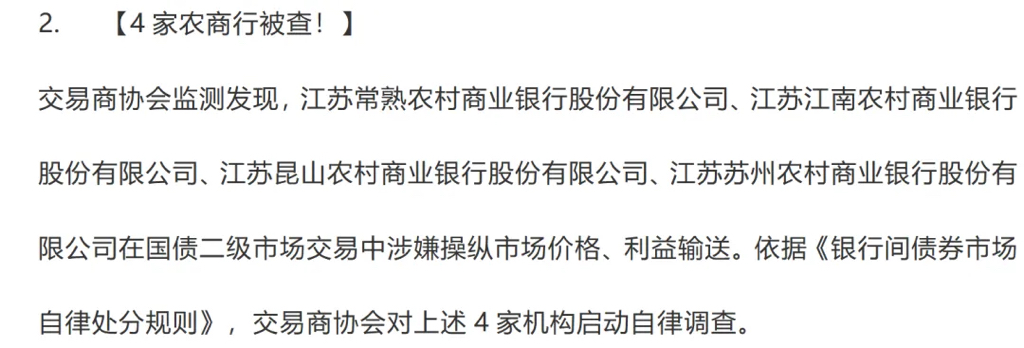 今日早盘,国债市场出现了全面下跌,30年期国债期货一度下跌了1%,10年期国债期货也一度下跌了近0.5%。银行间利率债的收益率普遍上升,2年期至7年期国债的收益率至少上升了4个基点,30年期国债的收益率上升了3个基点。这已经是国债市场连续第三个交易日出现下跌。近期债市的大幅波动可以视为在强势多头上涨过程中的正常调整,是短期乖离率增加后的正常回调。债市的多空博弈主要体现在两个方面:一是经济预期与债市期限结构的超调之间的矛盾;二是债市多头的超买情绪与央行对长债利率区间的管理之间的矛盾。短期内,长端利率可能会面临阶段性的上调压力,但并没有出现反转的基础。从中长期来看,长期限债券的利率可能会呈现阶梯式的下降趋势。为了控制长端利率,央行不得不采取进一步的措施,例如直接点名对江苏的四家农商行进行自律调查,因为它们涉嫌在国债二级市场交易中操纵价格和进行利益输送。