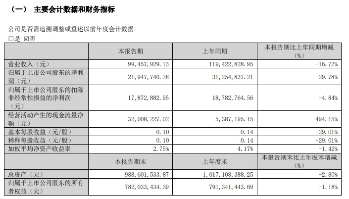 2024年第一季度公司实现营业收入同比减少16.27%,归属上市公司股东的净利润同比减少29.78%。